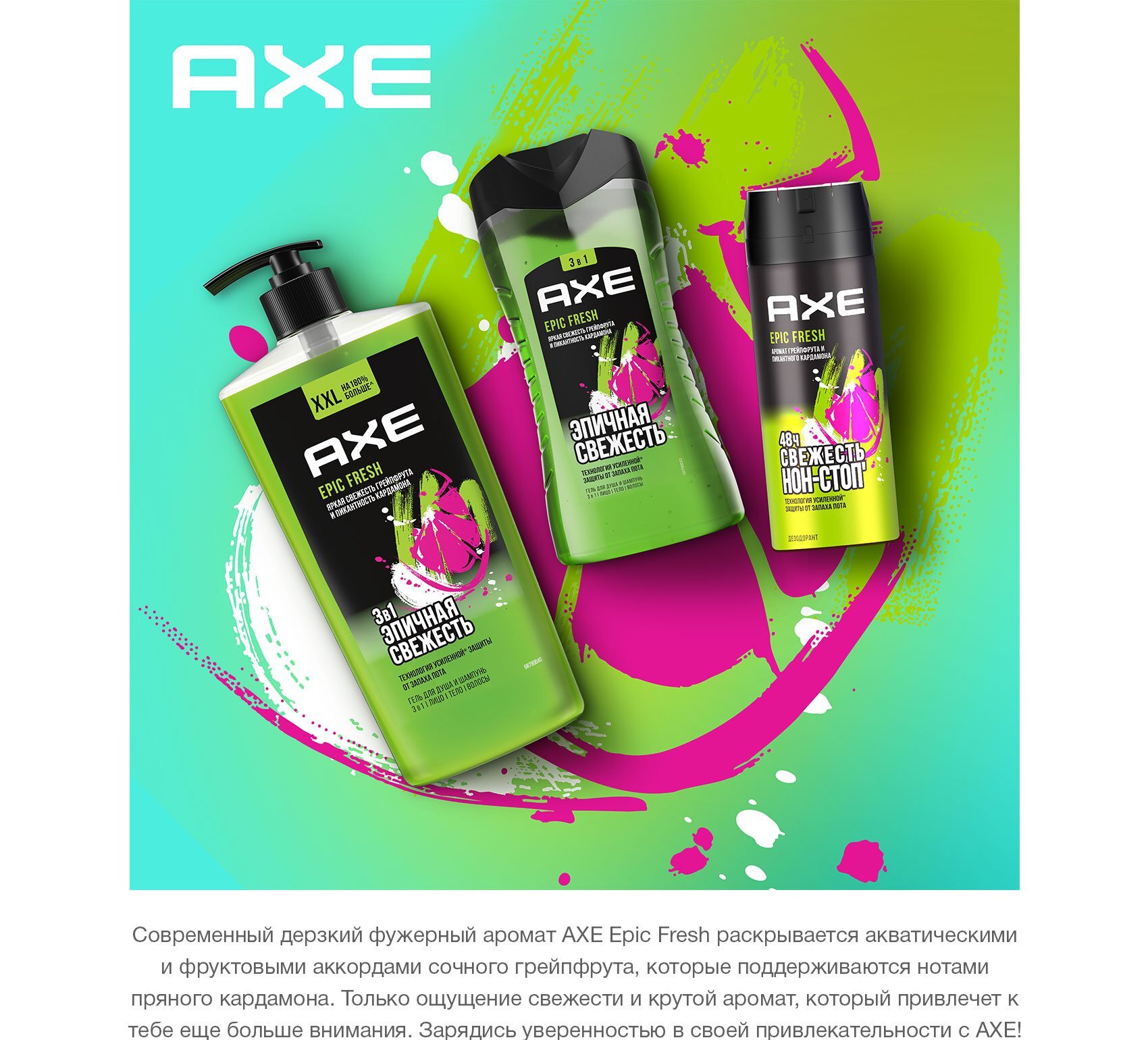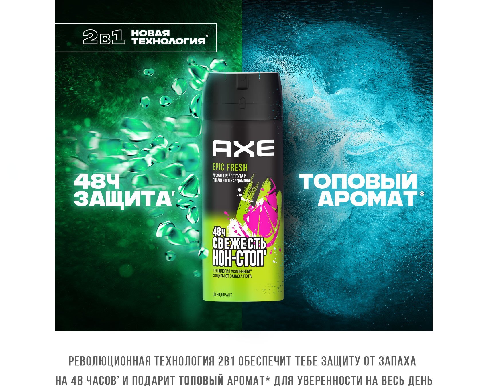 AXE мужской дезодорант спрей EPIC FRESH, Грейпфрут и Кардамон, защита 48 часов 150 мл