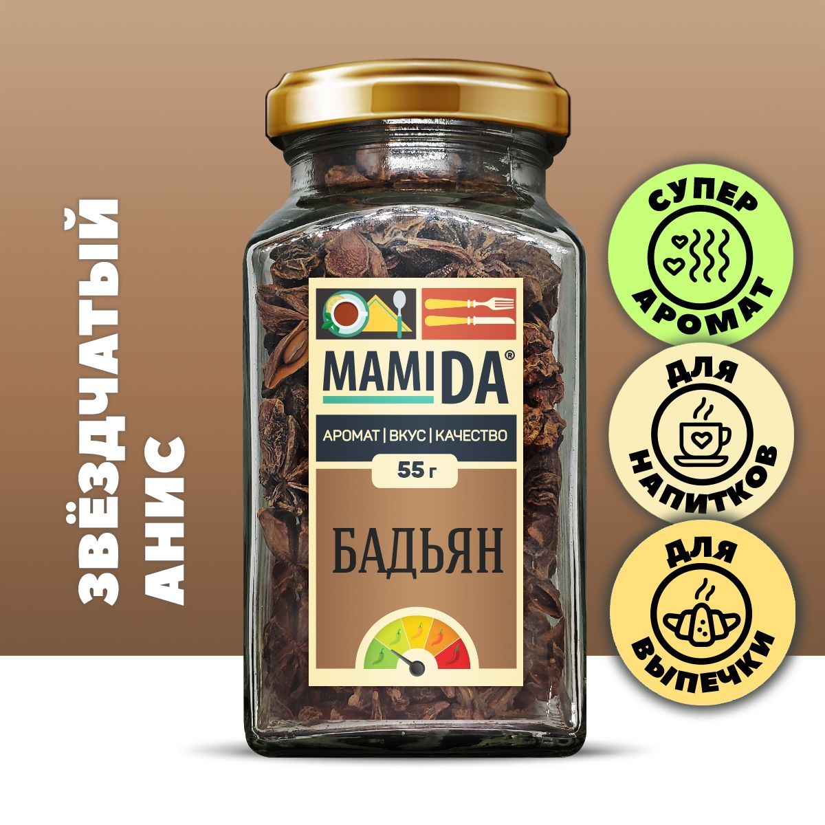 Бадьян ЦЕЛЫЙ ЗВЕЗДОЧКИ, специи приправы и пряности вкусы со всего мира МамиДА, 55г