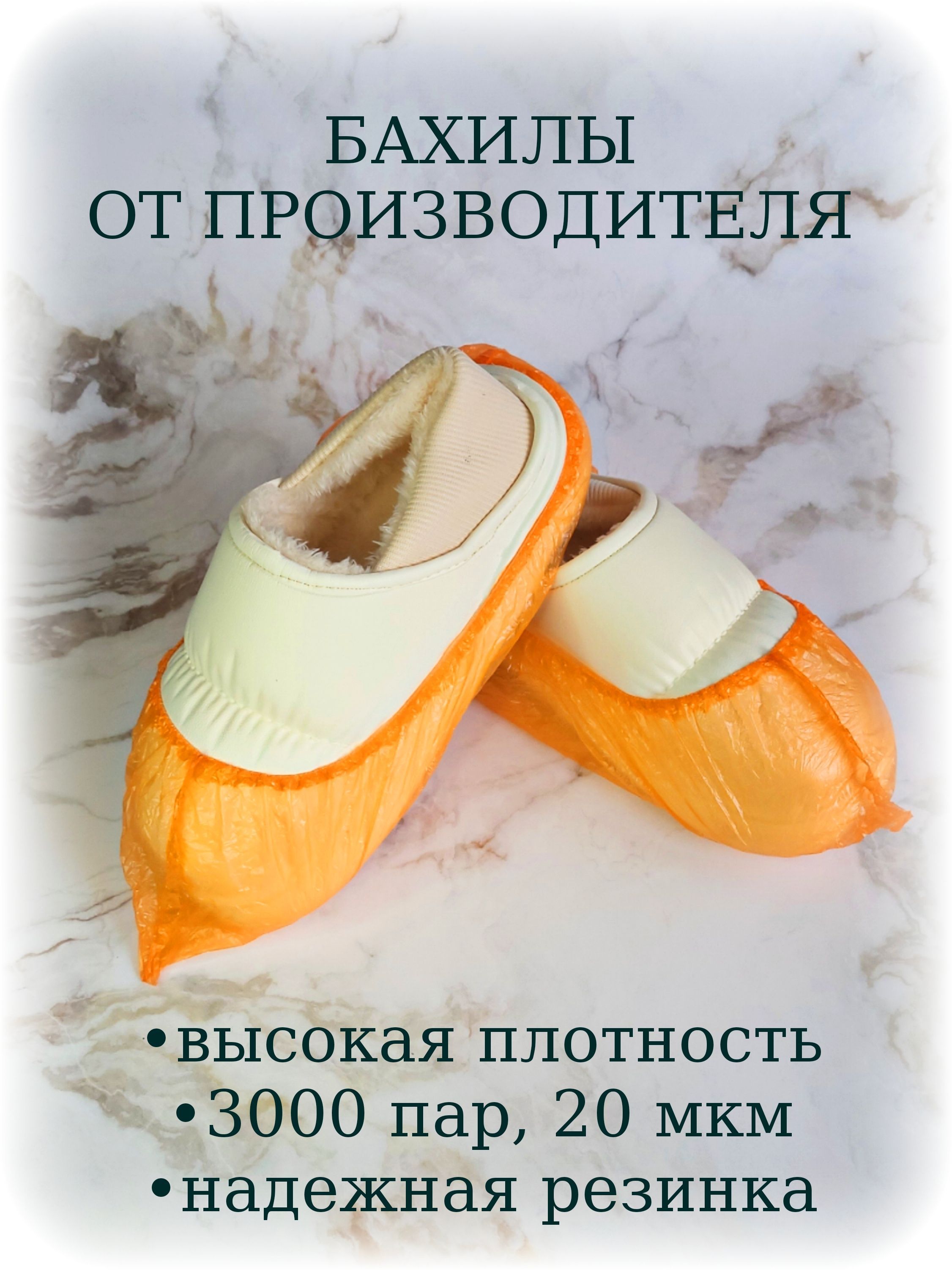 Бахилы цветные (20мкр) 3000 пар, яркие, от производителя, стандарт, оранжевые