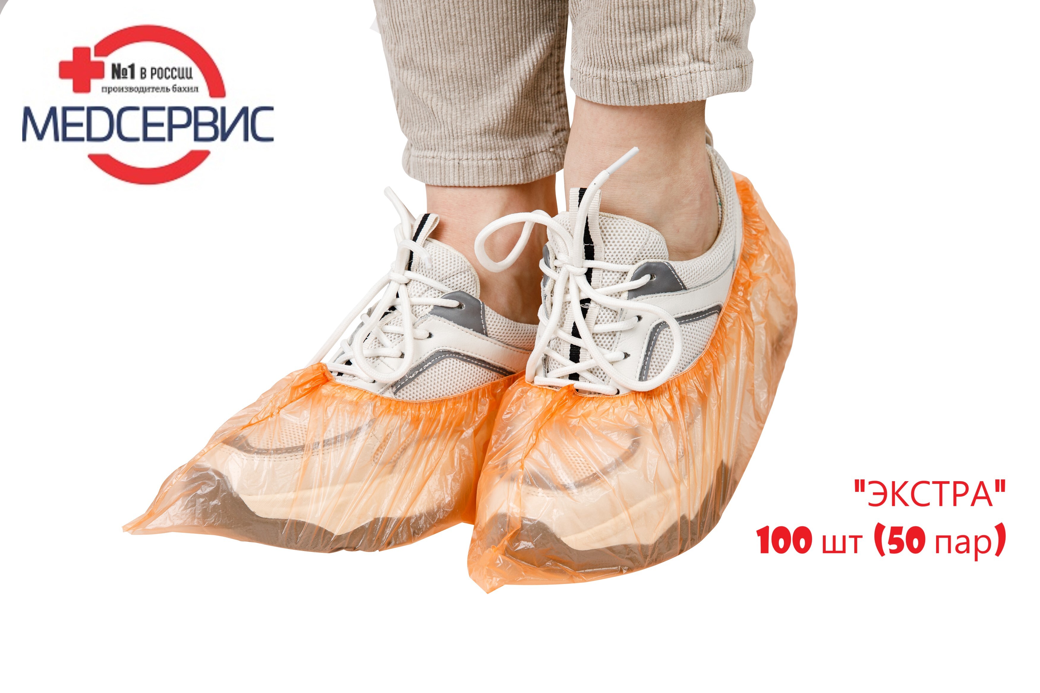 Бахилы медицинские, одноразовые, 100 шт (50 пар), ЭКСТРА, двойная резинка, оранжевые