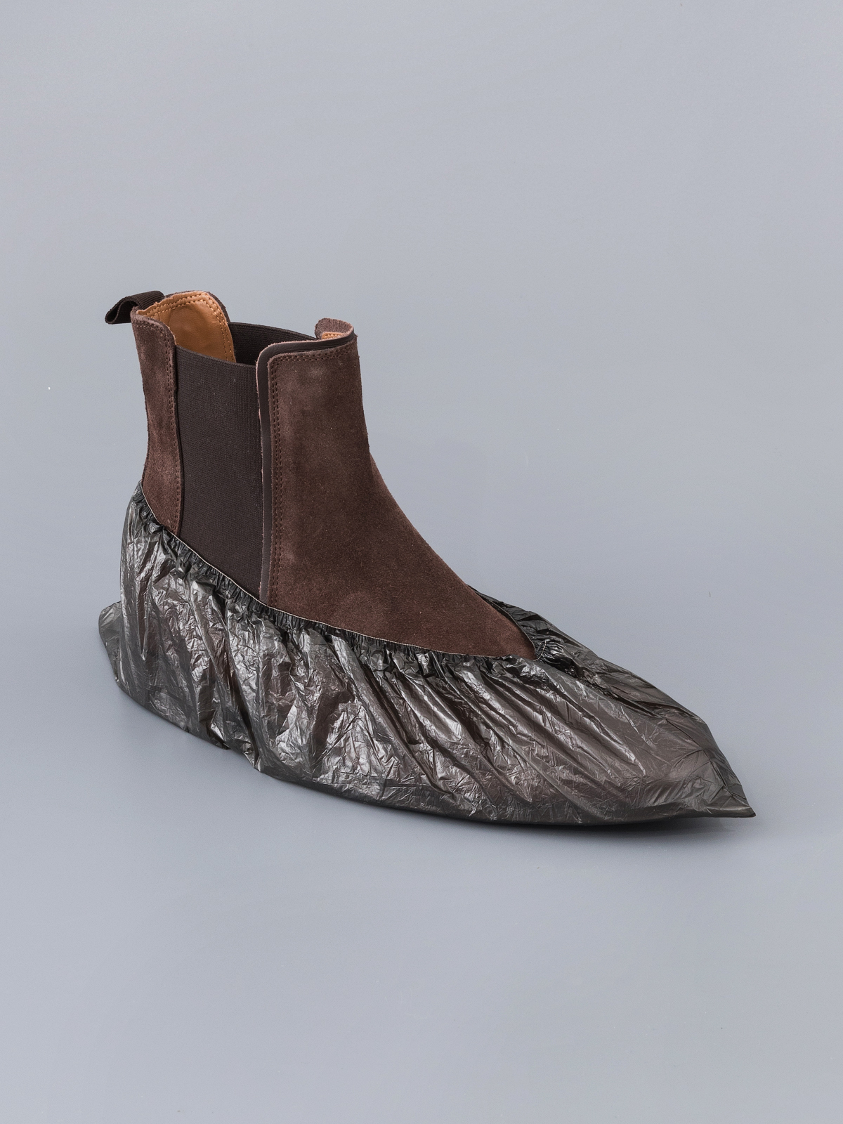 Прочная резинка, пропаянная по всей длине, плотно фиксирует медицинскую бахилу на ноге, материал хорошо сидит даже на массивной обуви.