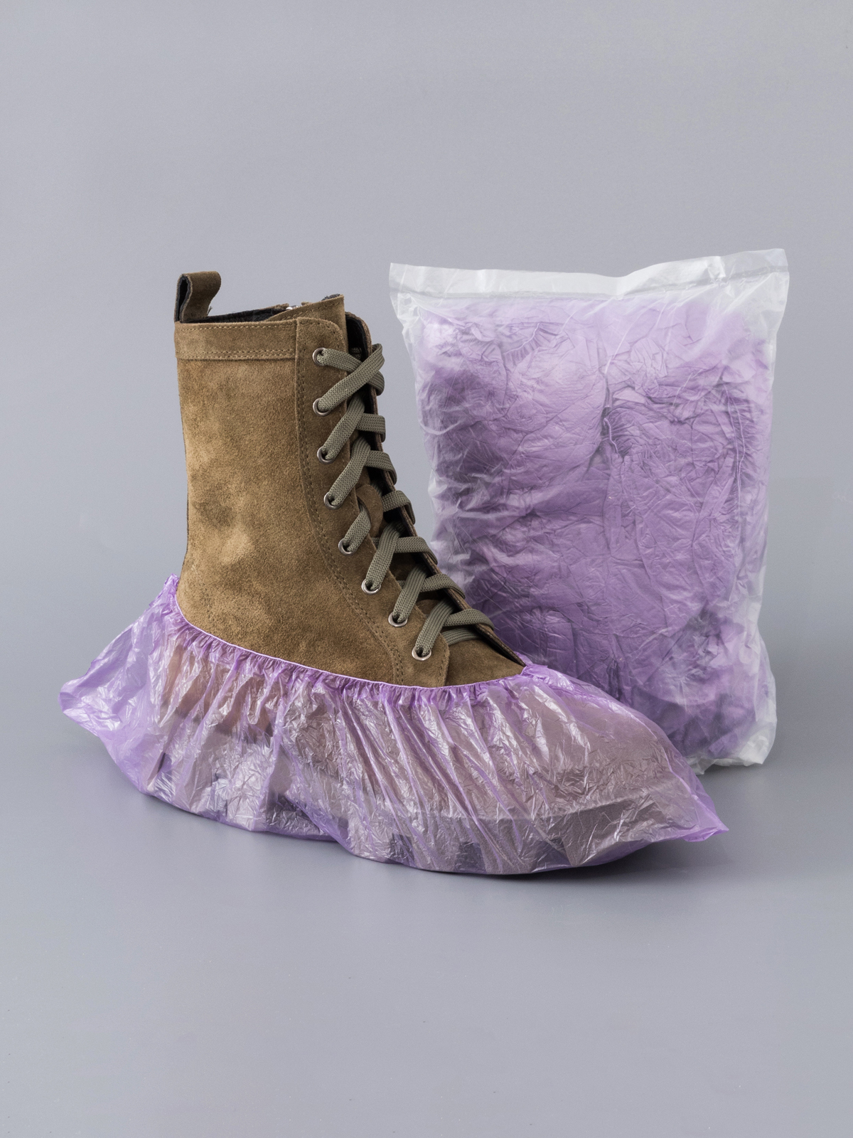Бахилы медицинские одноразовые ОПТИМА, 50 пар (100 шт.)/ фиолетовые, размер 40х14 см, толщина 30 мкм.