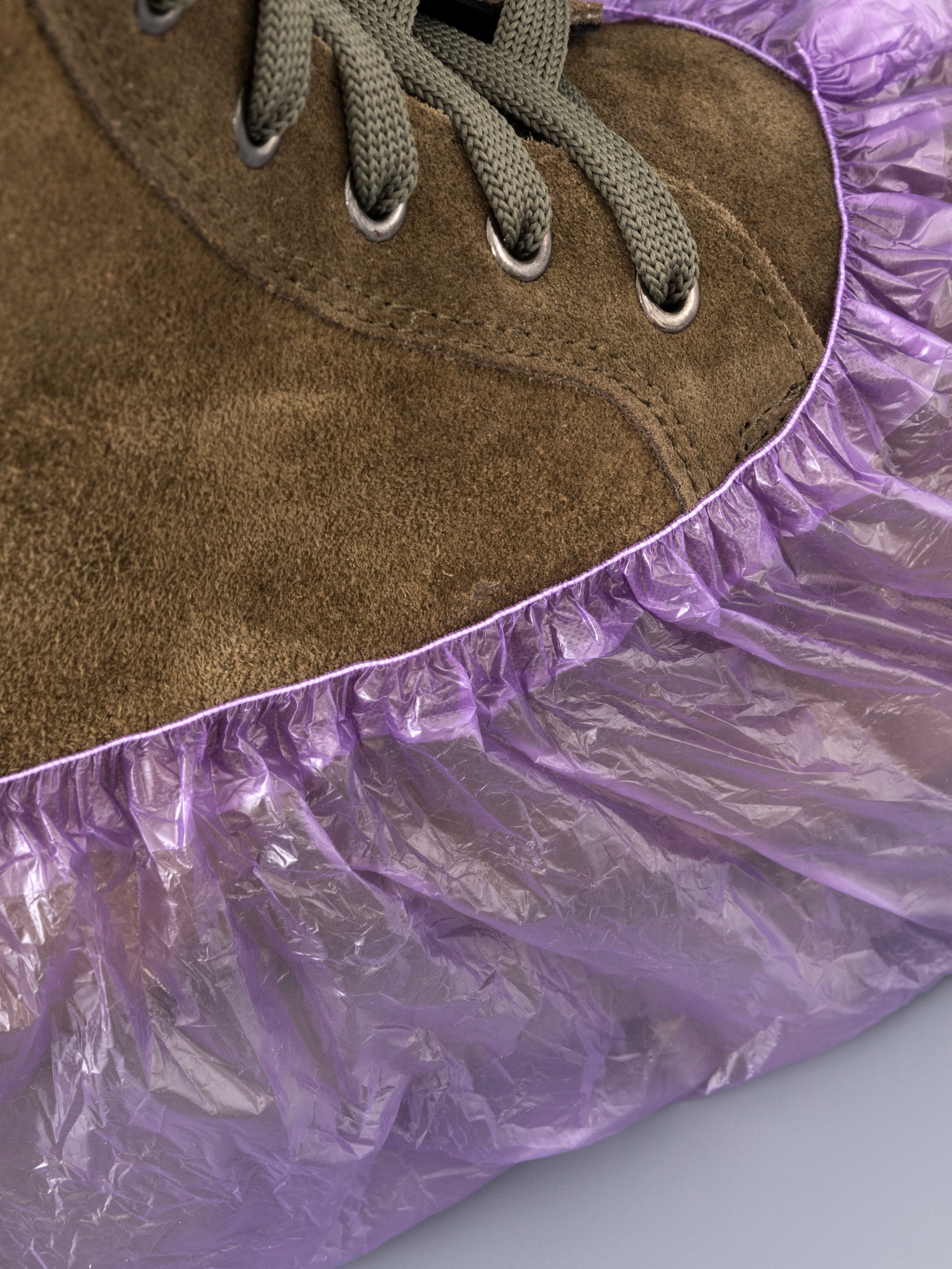 Прочная резинка, пропаянная по всей длине, плотно фиксирует медицинскую бахилу на ноге, материал хорошо сидит даже на массивной обуви.
