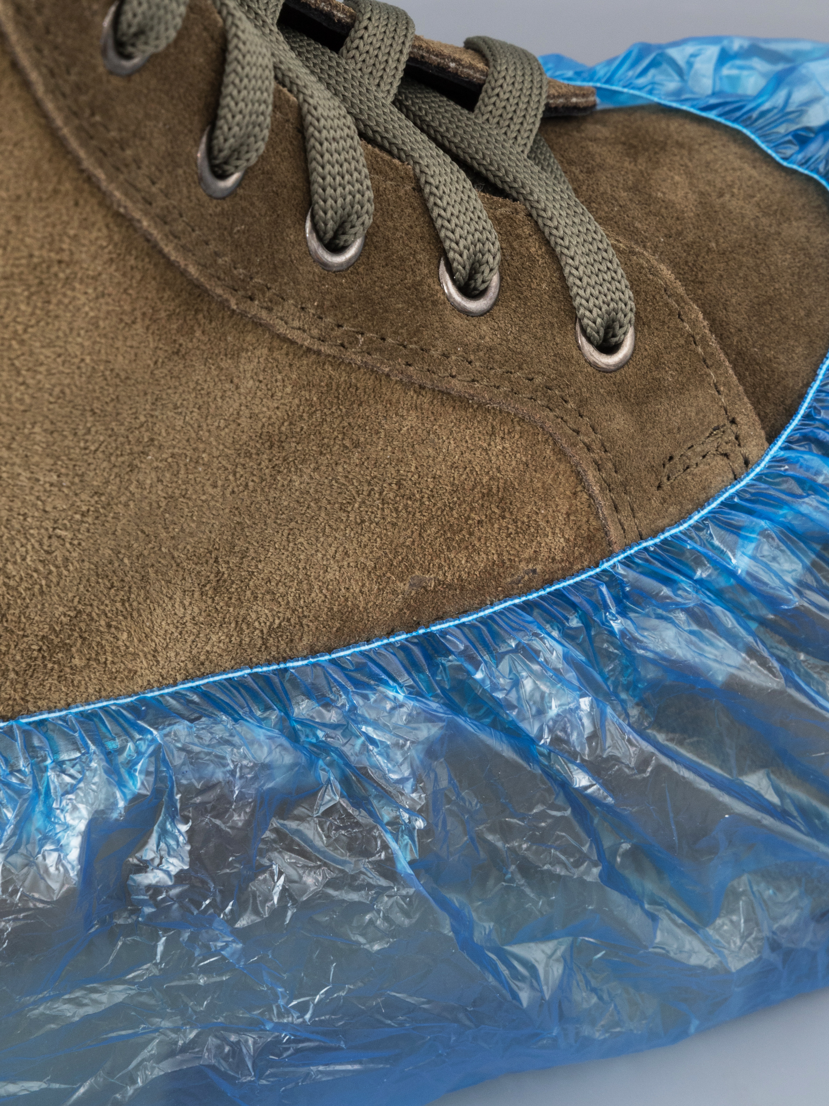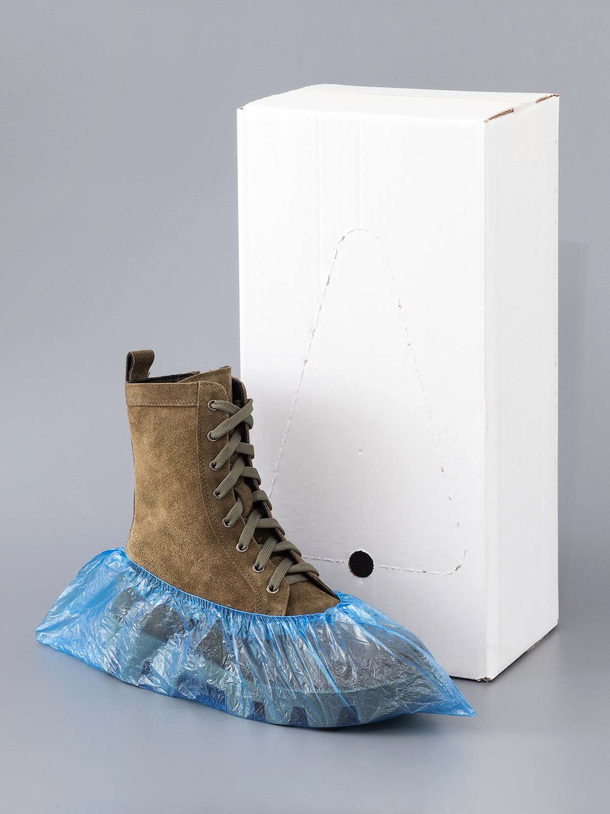 Прочная резинка, пропаянная по всей длине, плотно фиксирует медицинскую бахилу на ноге, материал хорошо сидит даже на массивной обуви.