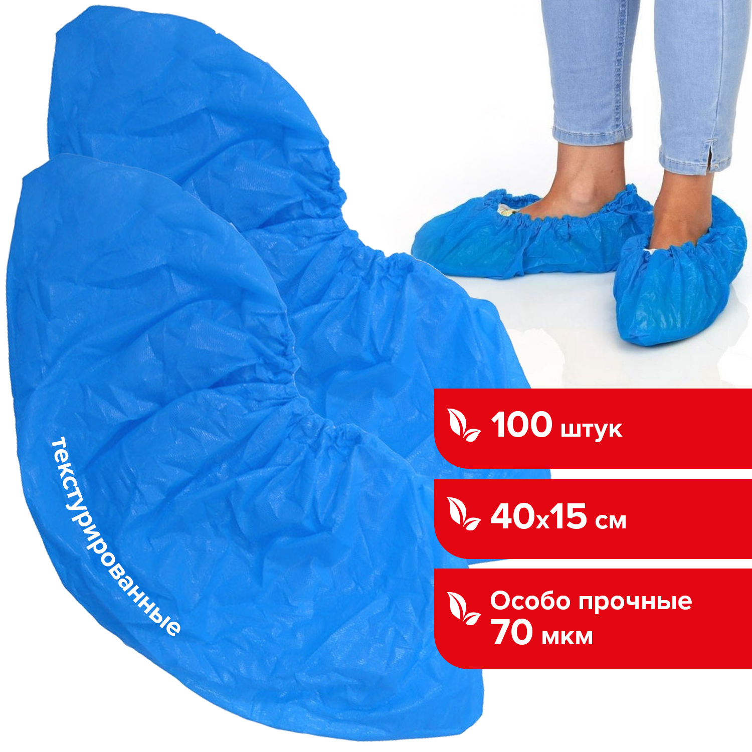 Бахилы одноразовые для обуви Комплект 100 штук (50 пар), Особо Прочные, текстурированные, 40х15 см, 70 мкм, 6 г, Пвд