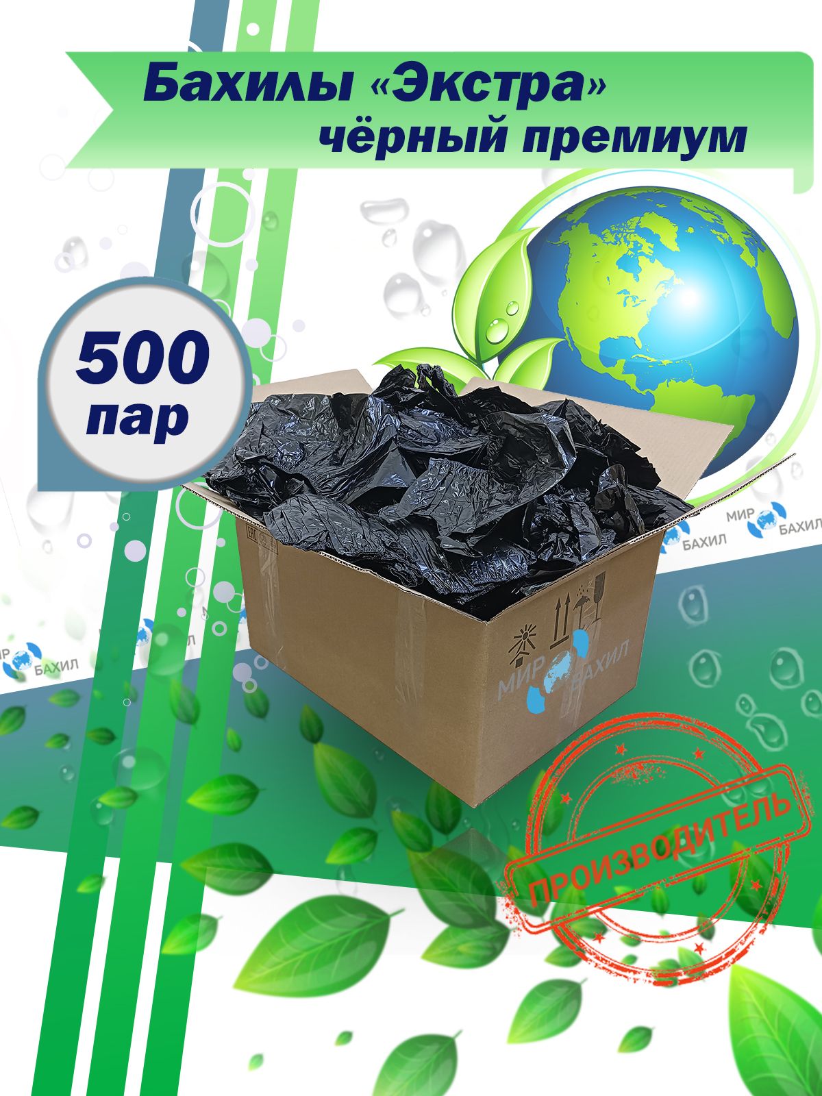 Бахилы одноразовые Экстра "Чёрный Премиум", толщина 70 мкм, 500пар (1000шт)