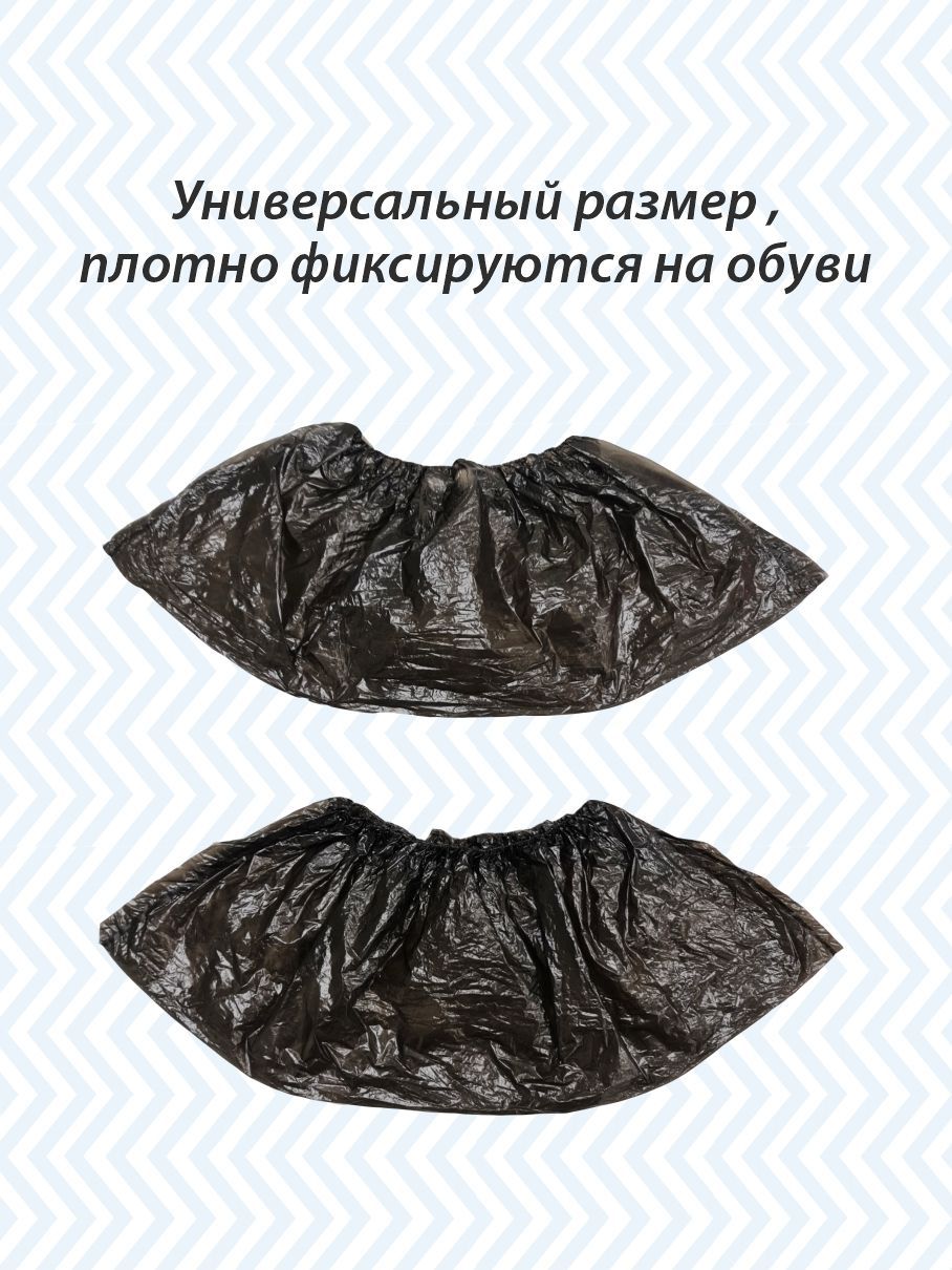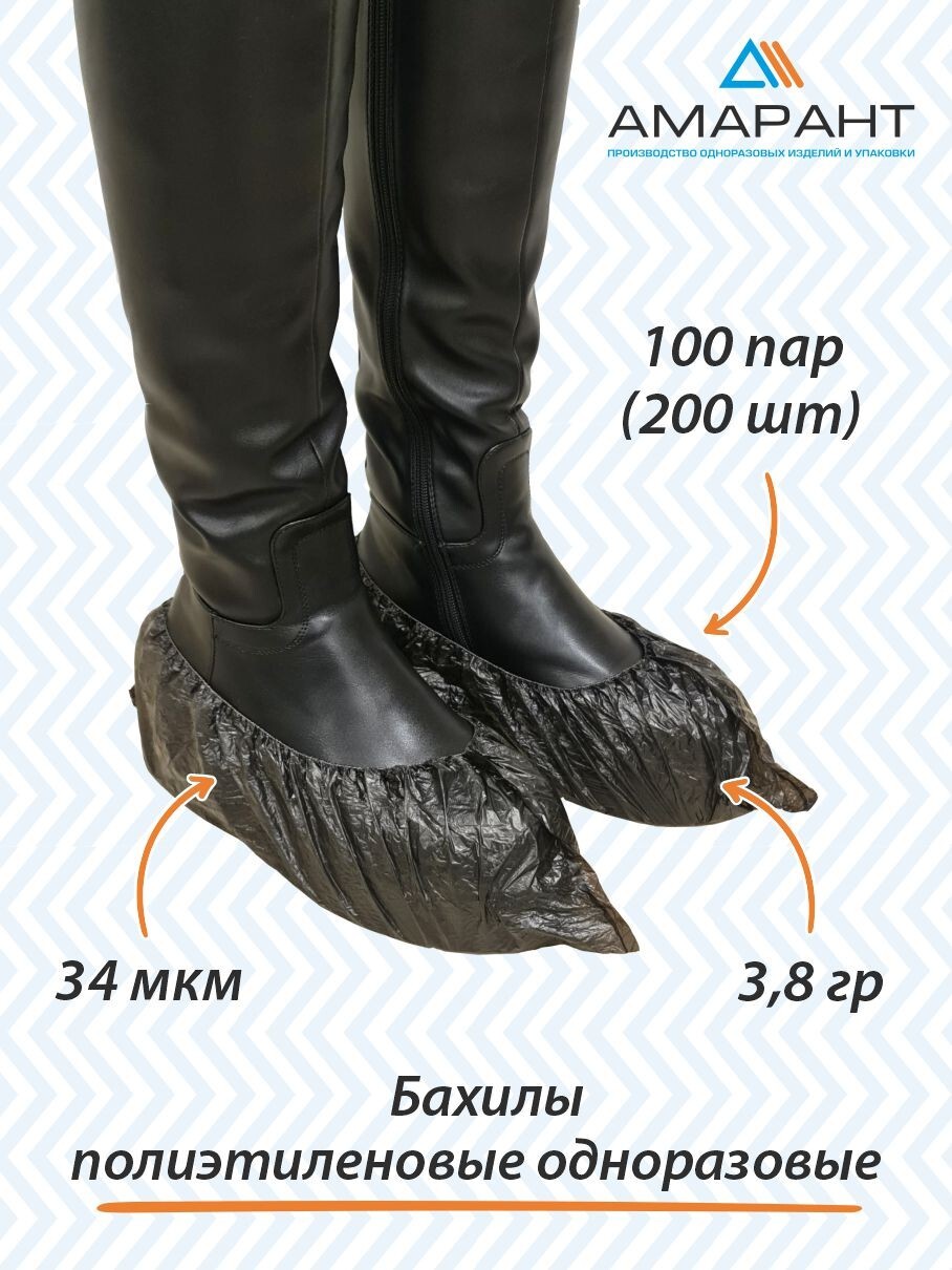 Бахилы одноразовые из полиэтилена, бахилы медицинские, для обуви, прочные, 34 мкм, 100 пар (200 шт), чёрные, Амарант