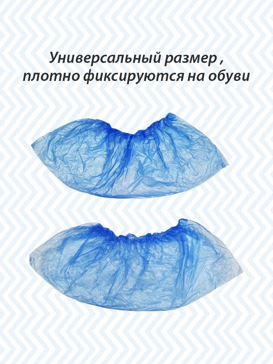 Бахилы полиэтиленовые одноразовые в евроблоке, 750 пар, 34 мкм, синие