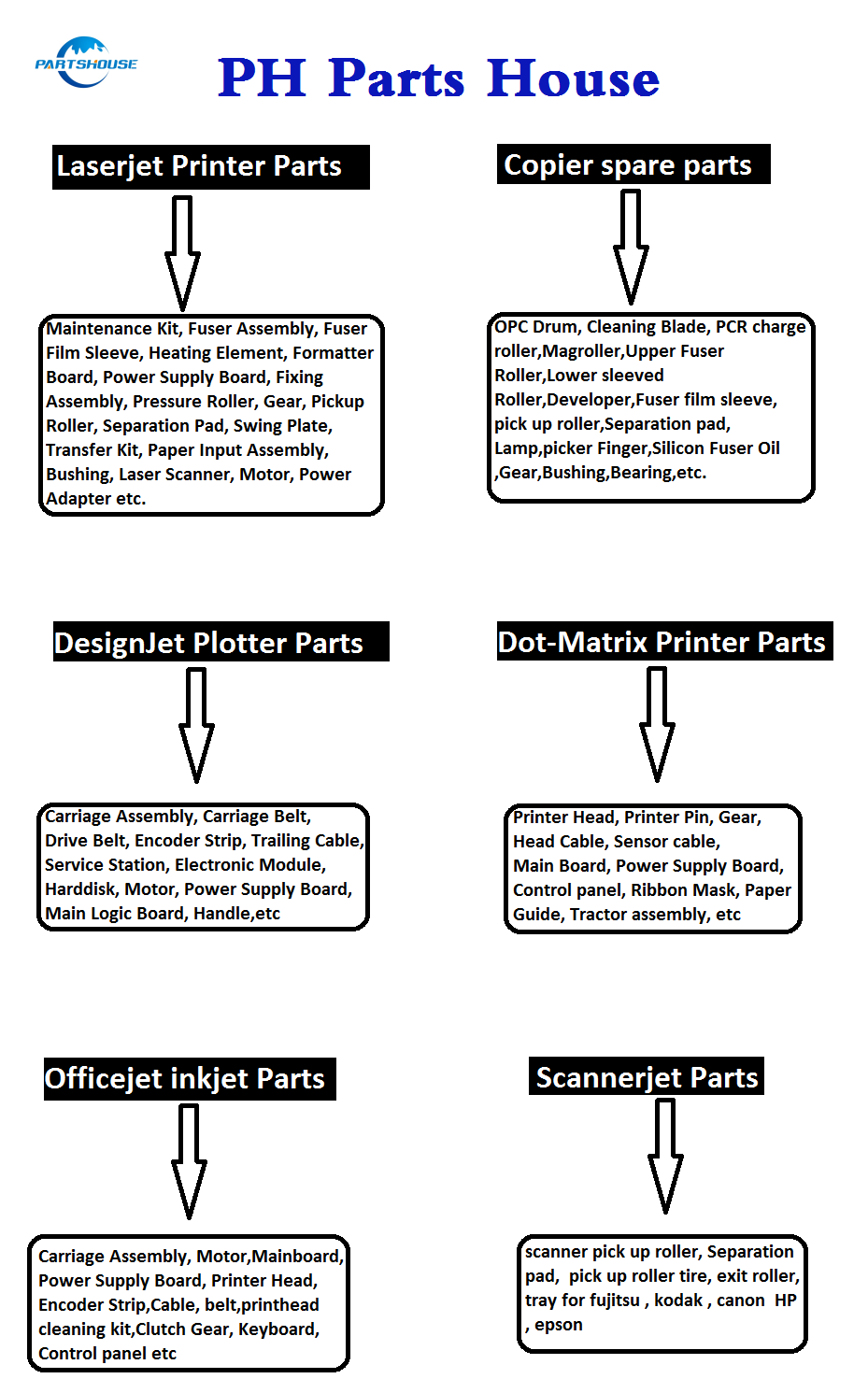 Наша компания специализируется на деталях для принтеров, копировальных аппаратов, плоттеров, матричных деталях и расходных материалах для принтеров. Если они вас интересуют, свяжитесь с нами по электронной почте или в Skype/Wechat.