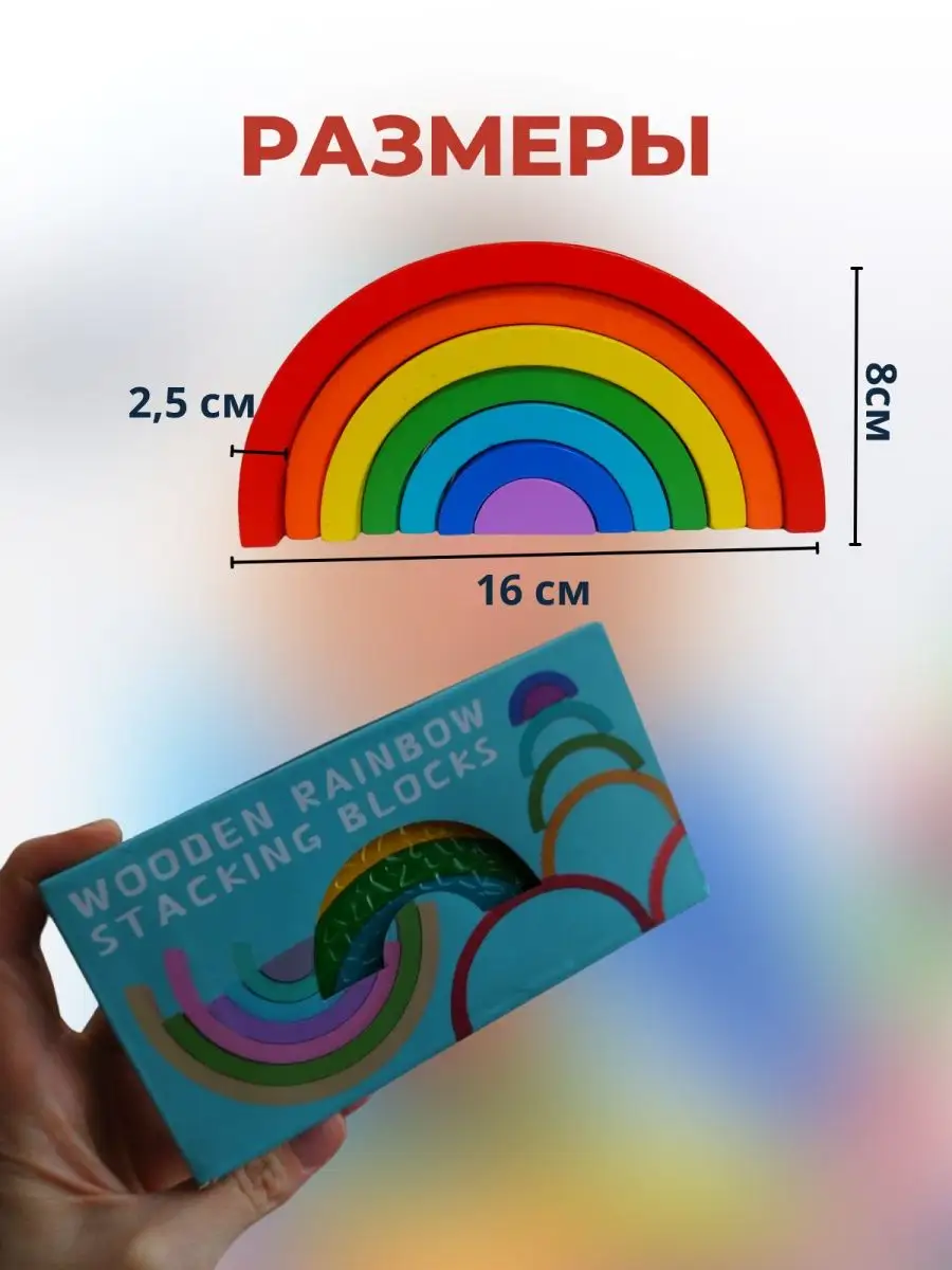 Комплектация 7 деревянных элементов цвета радуги