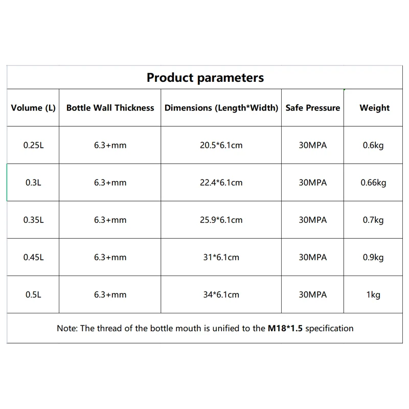 1. У нас есть разная емкость кислородных баллонов, поэтому вы можете выбрать их в соответствии с вашими личными предпочтениями.