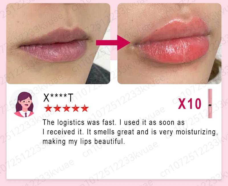 Быстро и постоянно пухлит губы, увеличивает регенерацию эластичной клетки губы, уменьшает тонкие линии, против старения и ремонтирует губы, делая губы более полными, соответствующий для губ всех цветов кожи. Может использоваться мужчинами, женщинами и беременными женщинами.