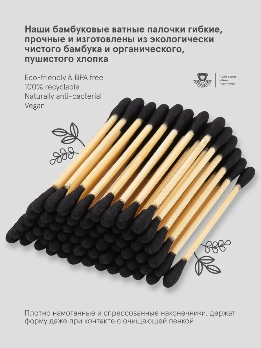 Комплектация Ватные палочки черный хлопок 100 шт