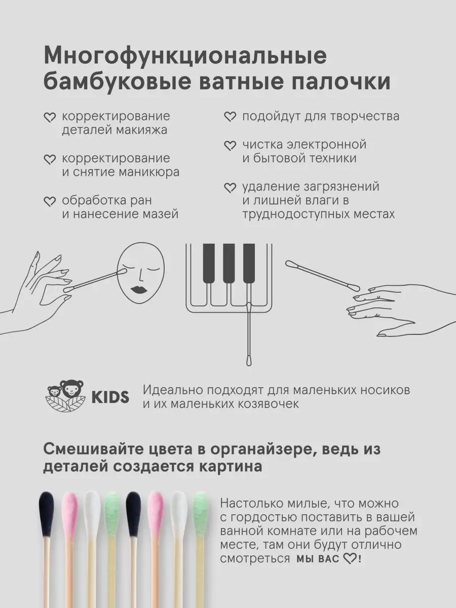 Бамбуковые ватные палочки для ухода и макияжа 100 шт.