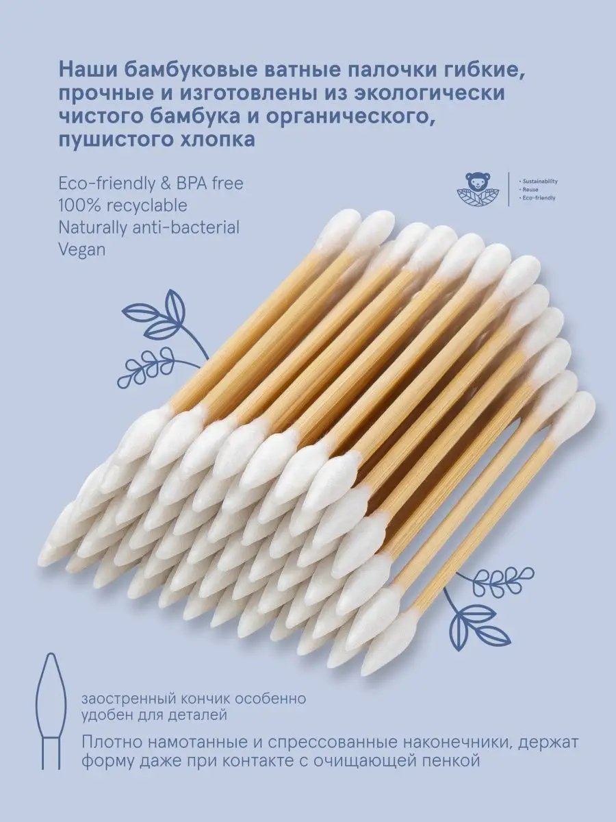 Бамбуковые ватные палочки с заостренным концом 100 шт.