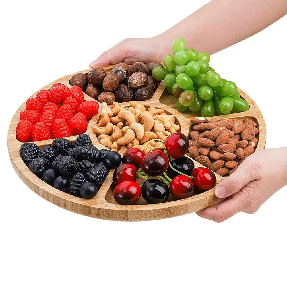 Бамбуковый поднос для закусок, круглая сервировочная тарелка для вечеринок, 5 ячеек, экологически чистая