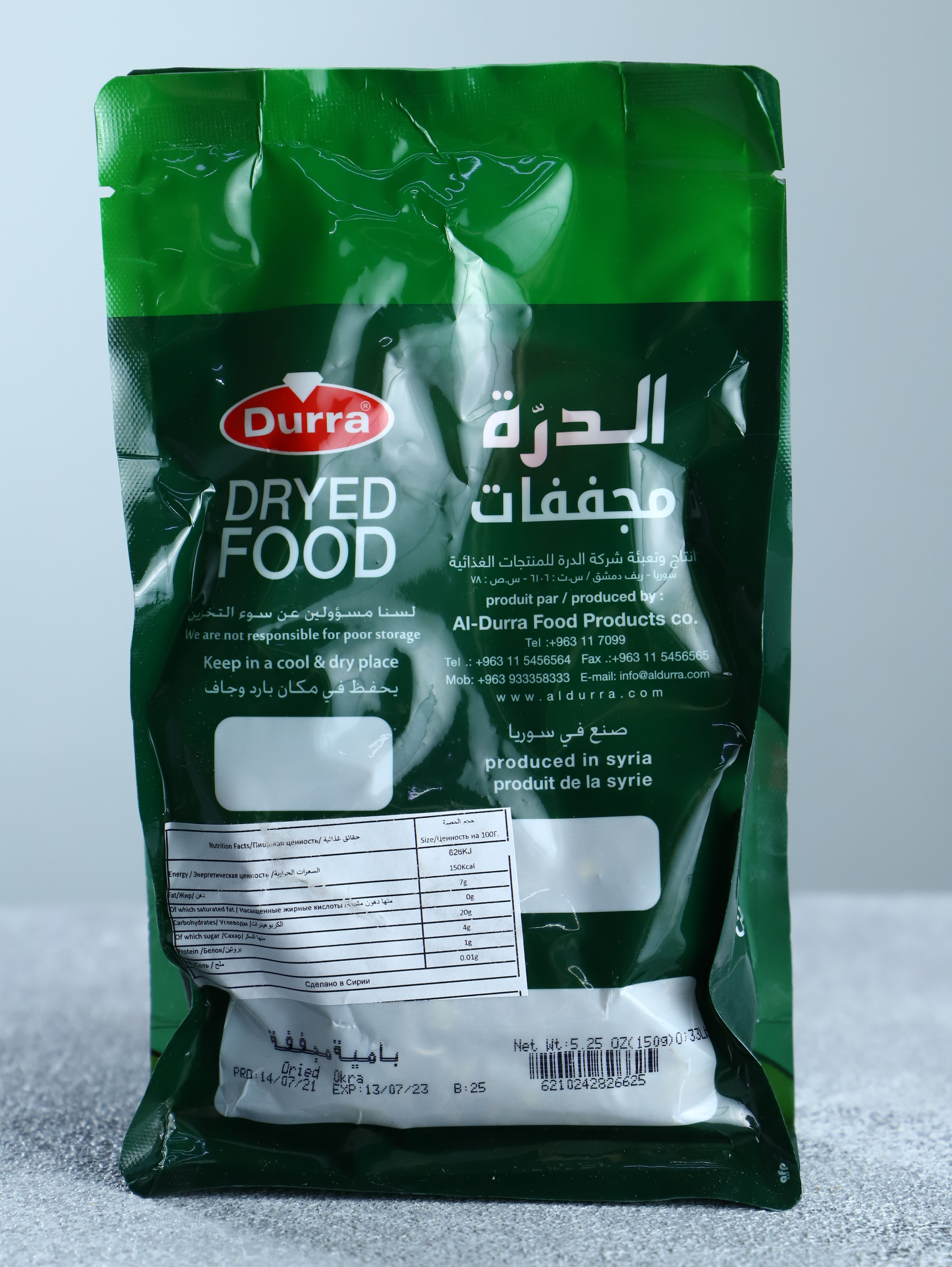 Описание: Блюда из Бамии одно из частых угощений в ближневосточной кухне. Бамия ценится за свои уникальные питательные свойства. В составе ряд витаминов А, С, железо, кальций, микроэлементы, белки, углеводы, хлорофилл, масла, органические кислоты, пищевые волокна и ряд других ценных веществ, которые помогают поддерживать здоровье и приносят организму колоссальную пользу. Плоды редкого овоща имеют вид коробочки пирамидальной формы и содержат множество семян. Стручки бамии полезные и отличаются пикантным вкусом, который напоминает смесь кабачков и стручковой фасоли. Сушеная бамия сохраняет все свои вкусовые и полезные свойства. В сушеном виде она достаточно долго хранится.Особенности кулинарной обработки: Тщательно промыть холодной водой, после залить кипятком на 15-20 мин.Овощ употребляют по разному. Это зависит от вкусовых пристрастий и фантазии повара: в салатах, в супах и других горячих блюдах, в тушеном виде, консервированным в рассоле.
