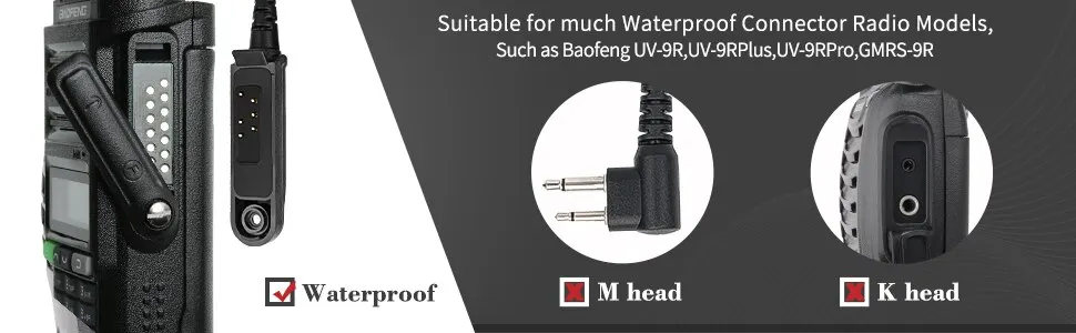 Подходит для многих моделей радио с водонепроницаемым разъемом, не подходит для радио с разъемом M-Head или K-Head