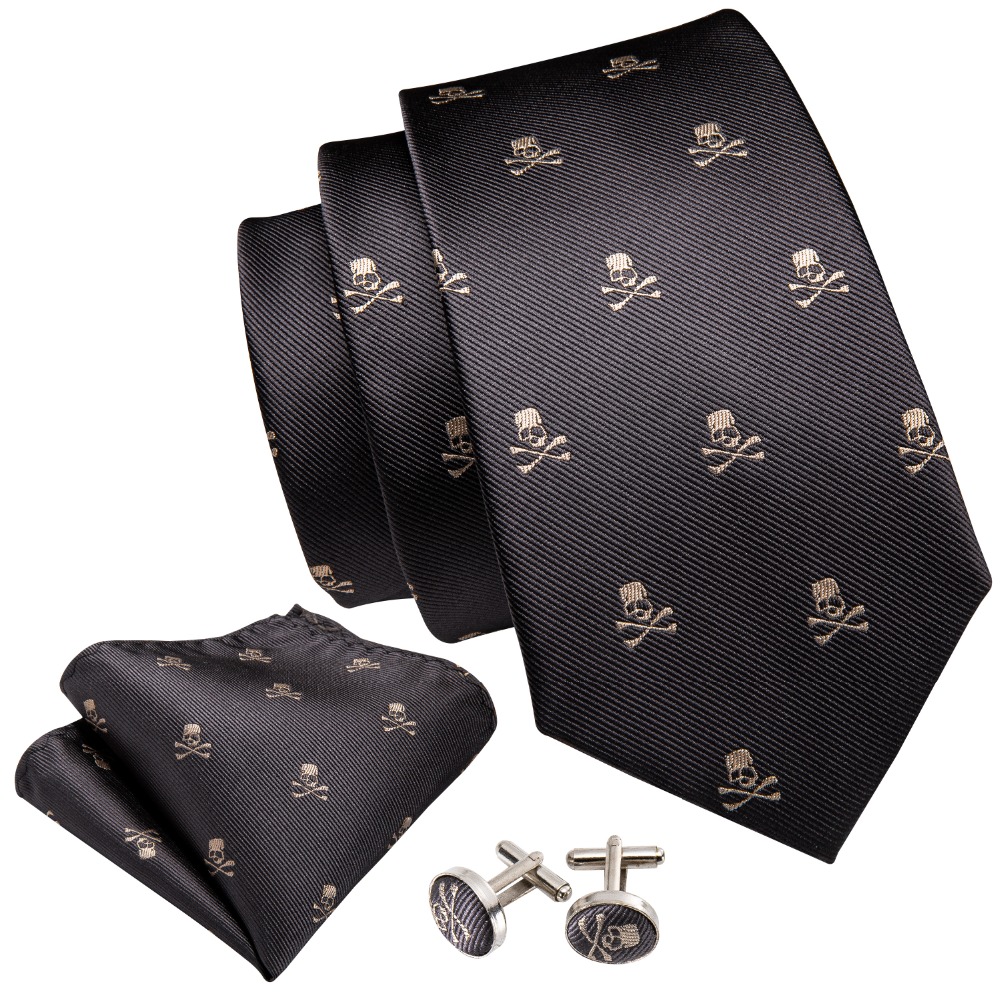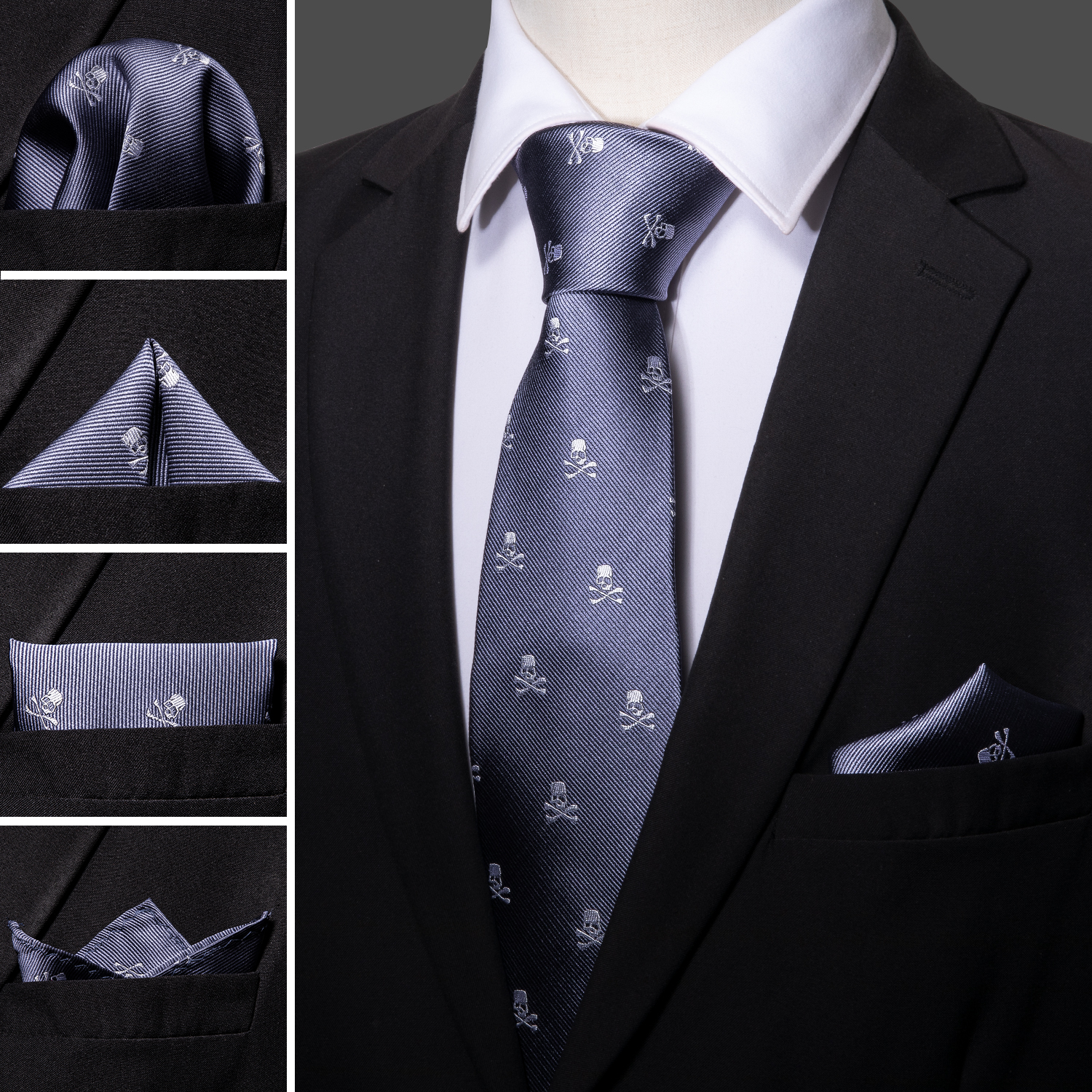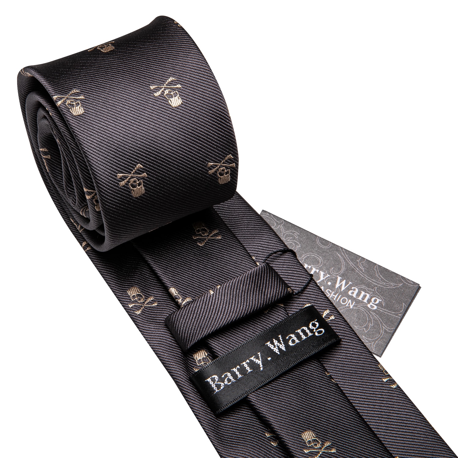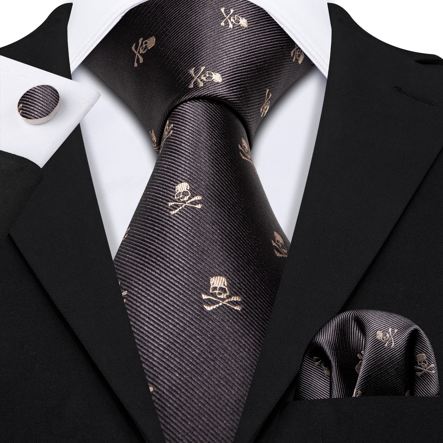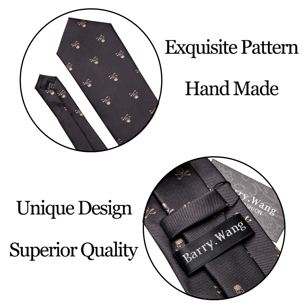 Barry.Wang Модельер Мужской галстук с коричневым черепом 8,5 см Шелковый галстук Носовой платок Подарочный набор для мужчин Свадебный бизнес-галстук для жениха