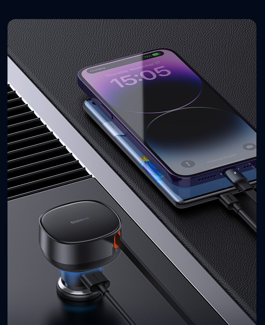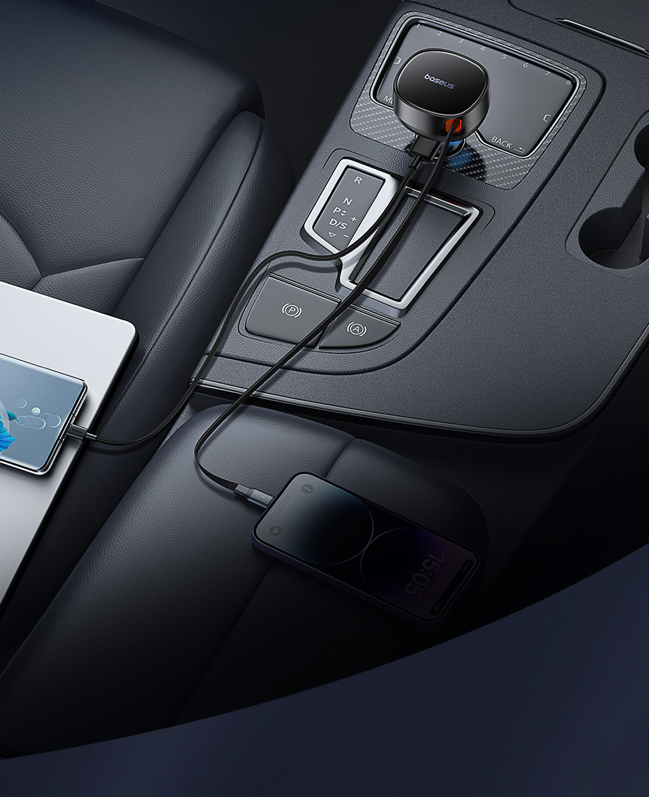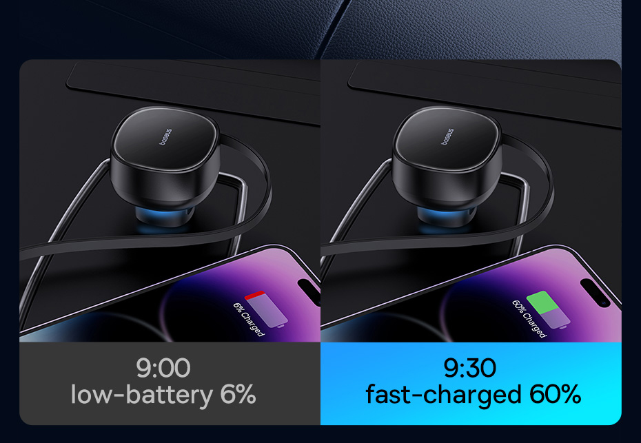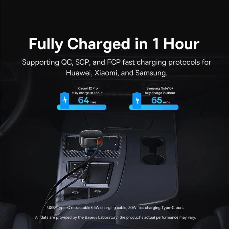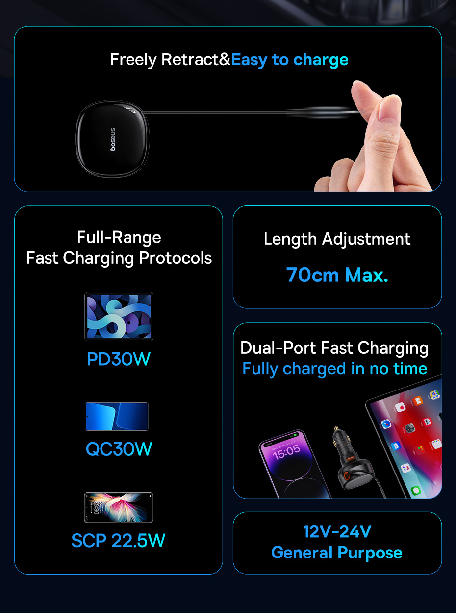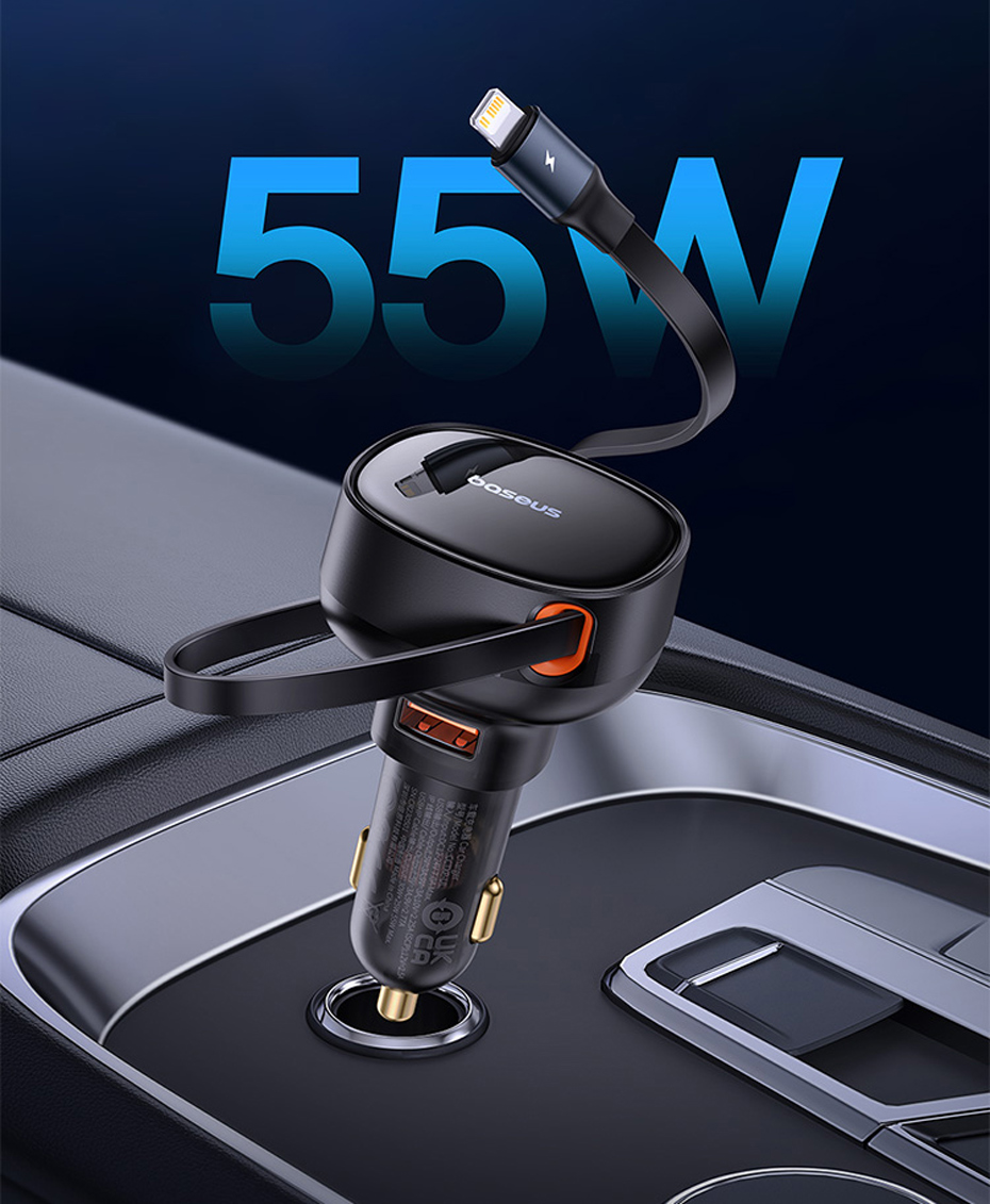 Автомобильное зарядное устройство Baseus U + Выдвижной кабель Type-C 60 Вт
