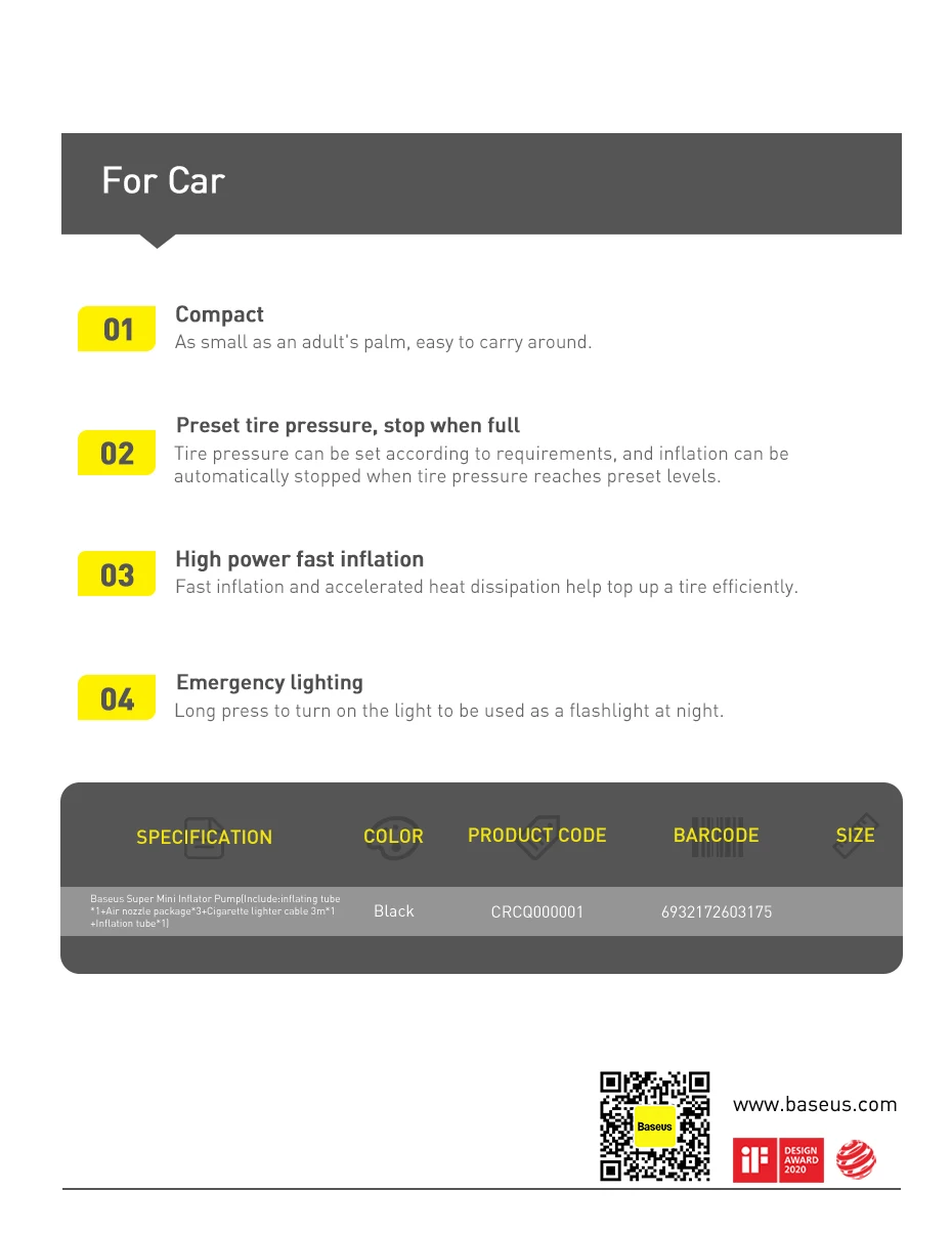 Feature 3 Mini Portable Car tyre inflator