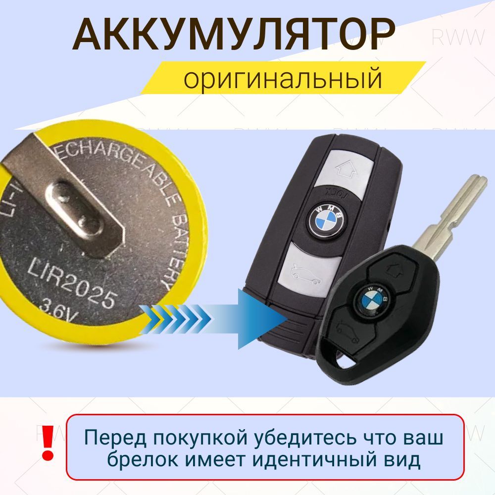 Вам достаточно просто, не затратив много усилий, заменить старый испорченный аккумулятор в корпусе ключа. И ваш ключ станет опять как новый. Характеристики: • Аккумулятор для ключа BMW • Напряжение: 3.6 V • Тип: 2025. Вопрос: Будет ли моя машина заводиться аккумулятор сел в ключе? Ответ: Да будет, аккумулятор отвечает только за открытие и закрытие дверей. __________