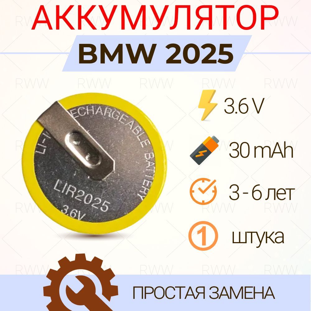 Батарейка аккумулятор в ключ для BMW 2025 (Li-ion) 3,6V 30 мА 1 шт