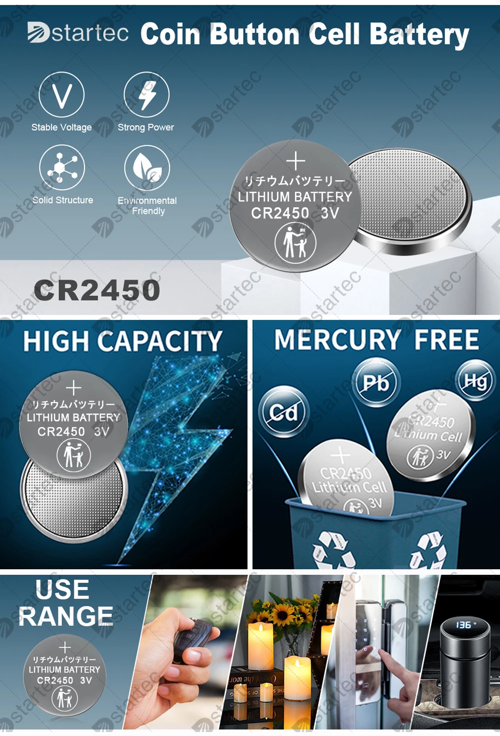 * Держите свою электронику заряженной нашими премиальными батареями CR2450; Наши кнопочные батареи класса A 2450 обеспечивают длительный срок службы батареи и длительный срок службы; каждая литиевая батарея CR2450 3 В была протестирована в соответствии со строгими стандартами качества и сертифицирована CE и RoHS;