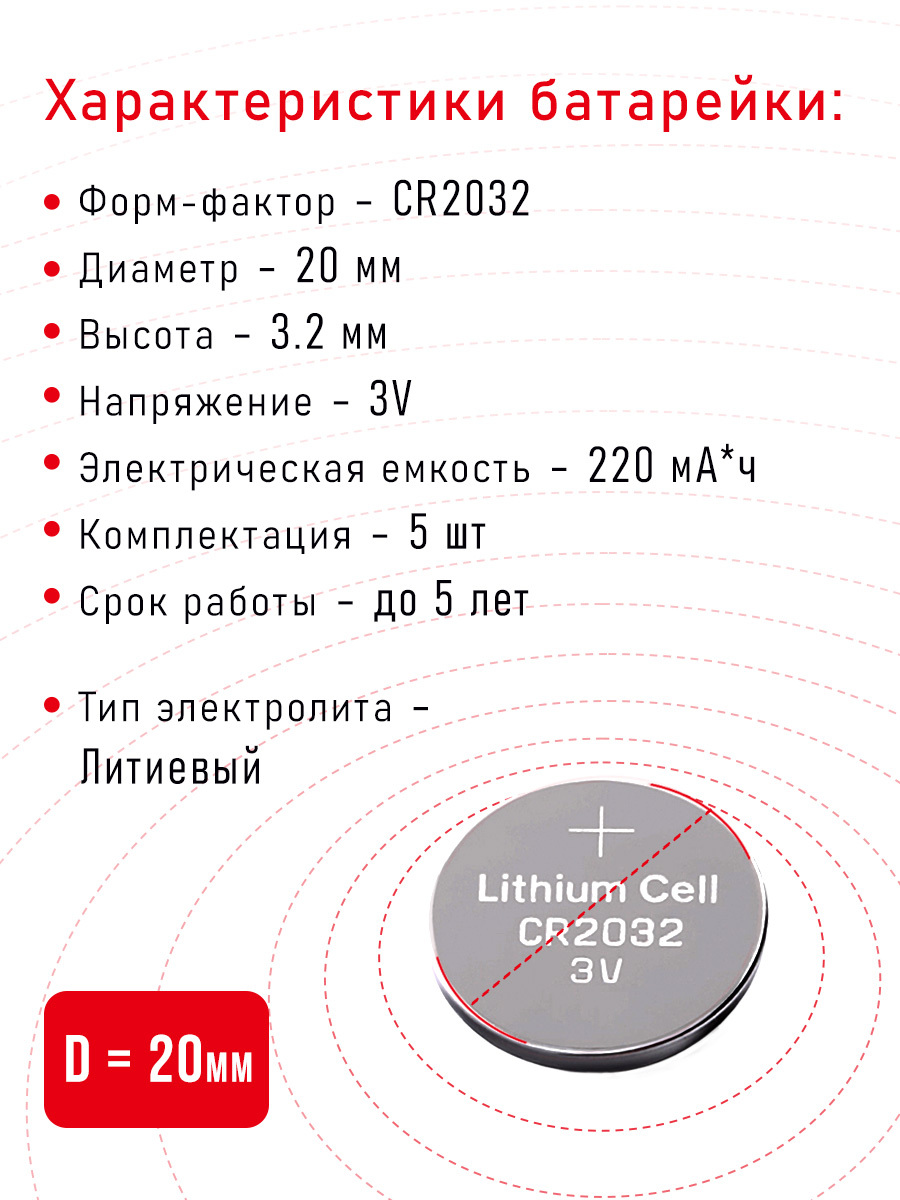 Литиевая батарейка CR2032 - 5 шт