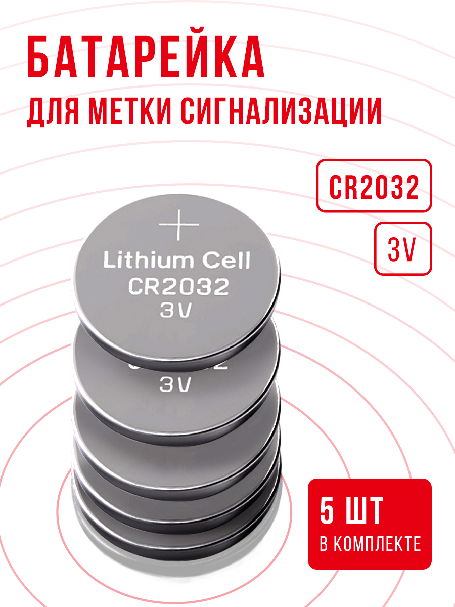 Батарейка для метки сигнализации CR2032 5 шт 3v / Для замены в метке сигнализации Starline, Centurion, Pandora, Jaguar