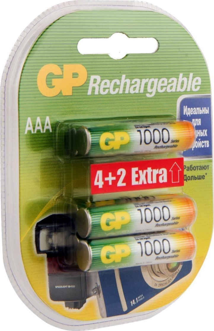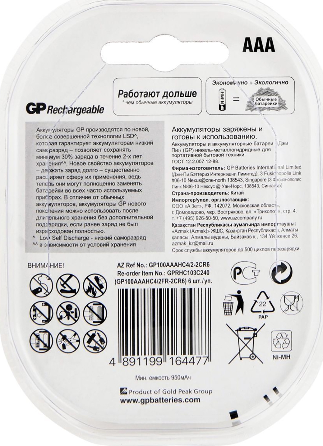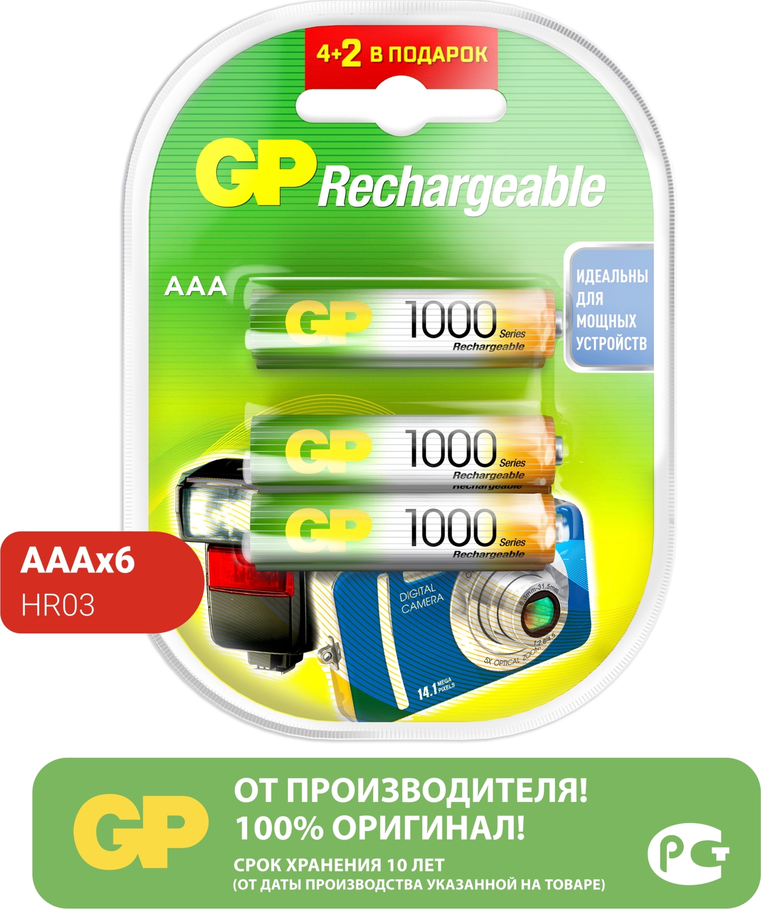 Батарейки ААА мизинчиковые аккумуляторные GP 100AAAHC HR03, набор 6 шт