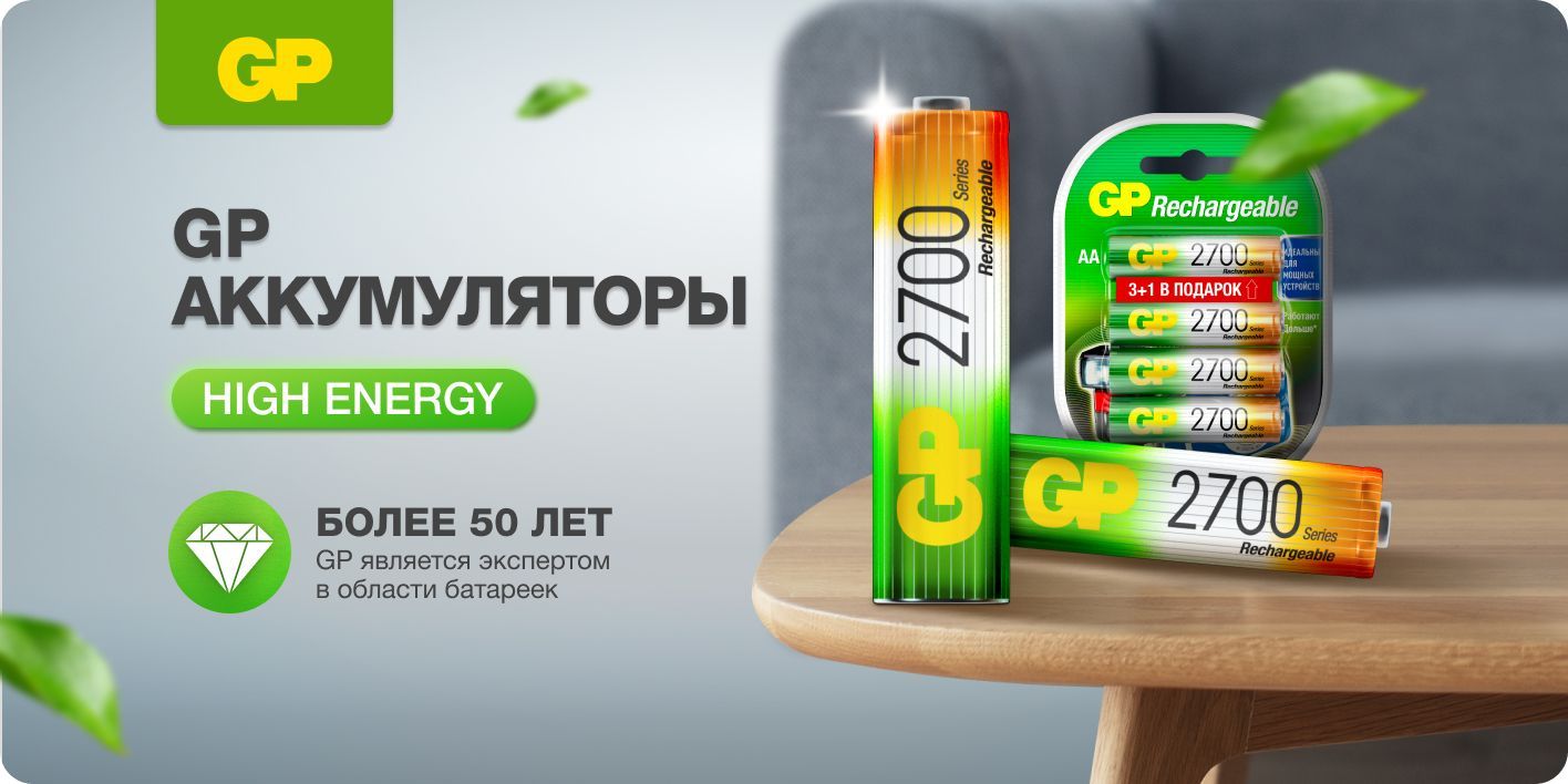 Описание: Уникальные технологииСозданы по уникальной технологии. Аккумуляторы имеют большой объем емкости – 2700 мАч. В результате они имеют увеличенную продолжительность работы. Элементы питания GP выдерживают до 500 циклов перезарядки, что позволяет запитать множество устройств в доме.ЭкологичностьАккумуляторы GP заменяют до 500 батареек и берегут природу.СовместимостьКомплект никель-металлогидридных аккумуляторов от GP – идеальное решение для энергоемких и часто используемых устройств: