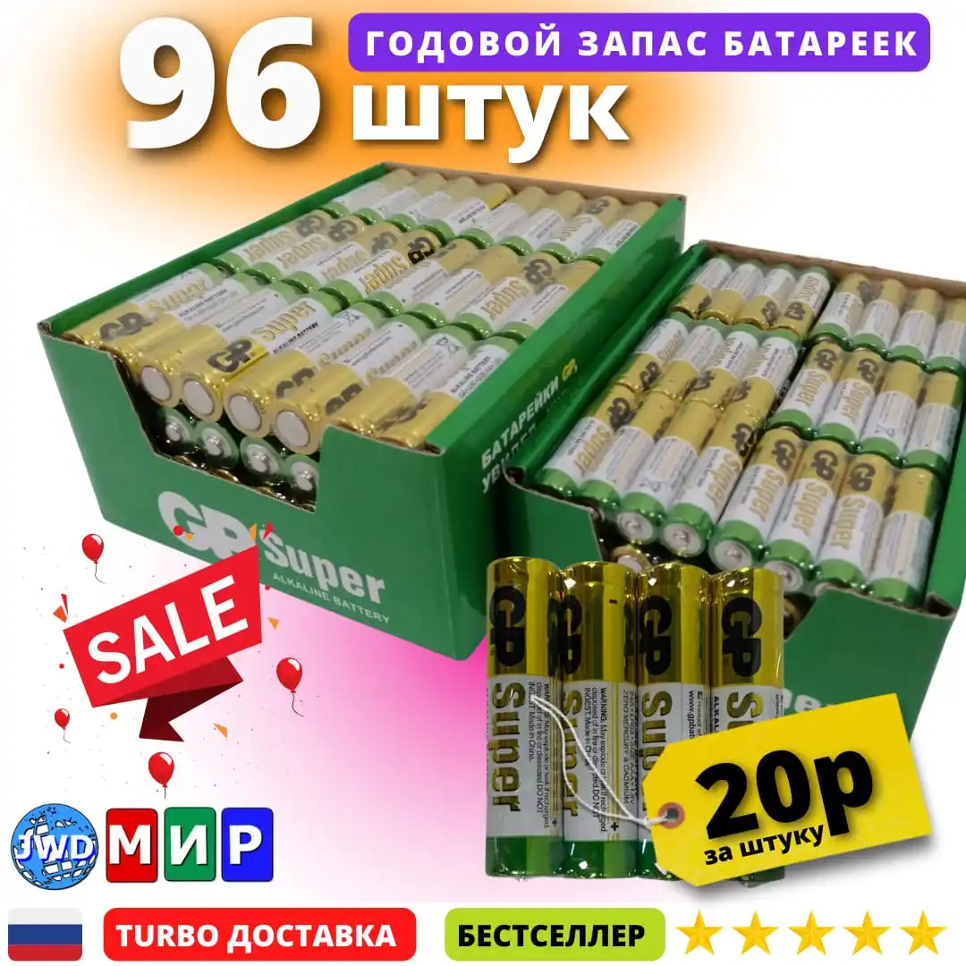 Батарейки GP пальчиковые алкалиновые AA R6 1.5V Батарейки Alkaline 96 штук.
