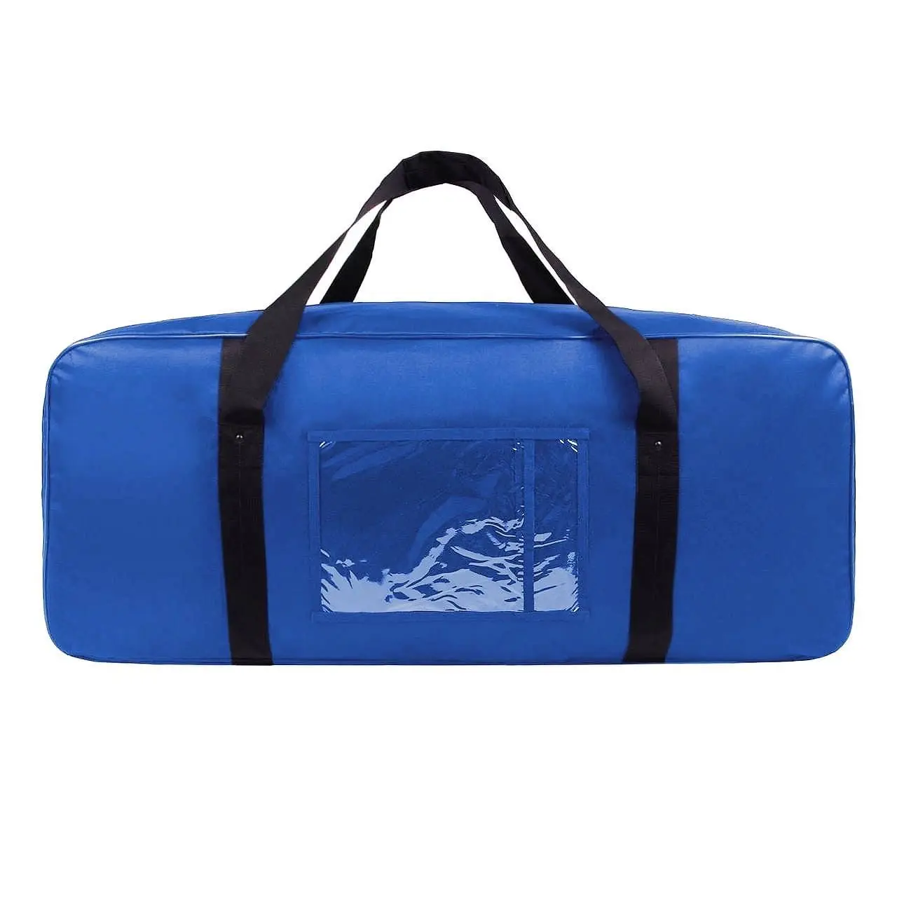 Большая спортивная сумка  для транспортировки хоккейного снаряжения. Изготовлена из прочной водоотталкивающей ткани. Внутренние швы окнтованы. Имеется одно объёмное отделение, два боковых внутренних кармана, один  накладной карман из прозрачной силиконовой плёнки на передней стенке. Ручки укреплены хольнитенами, оснащены текстильными подручниками.