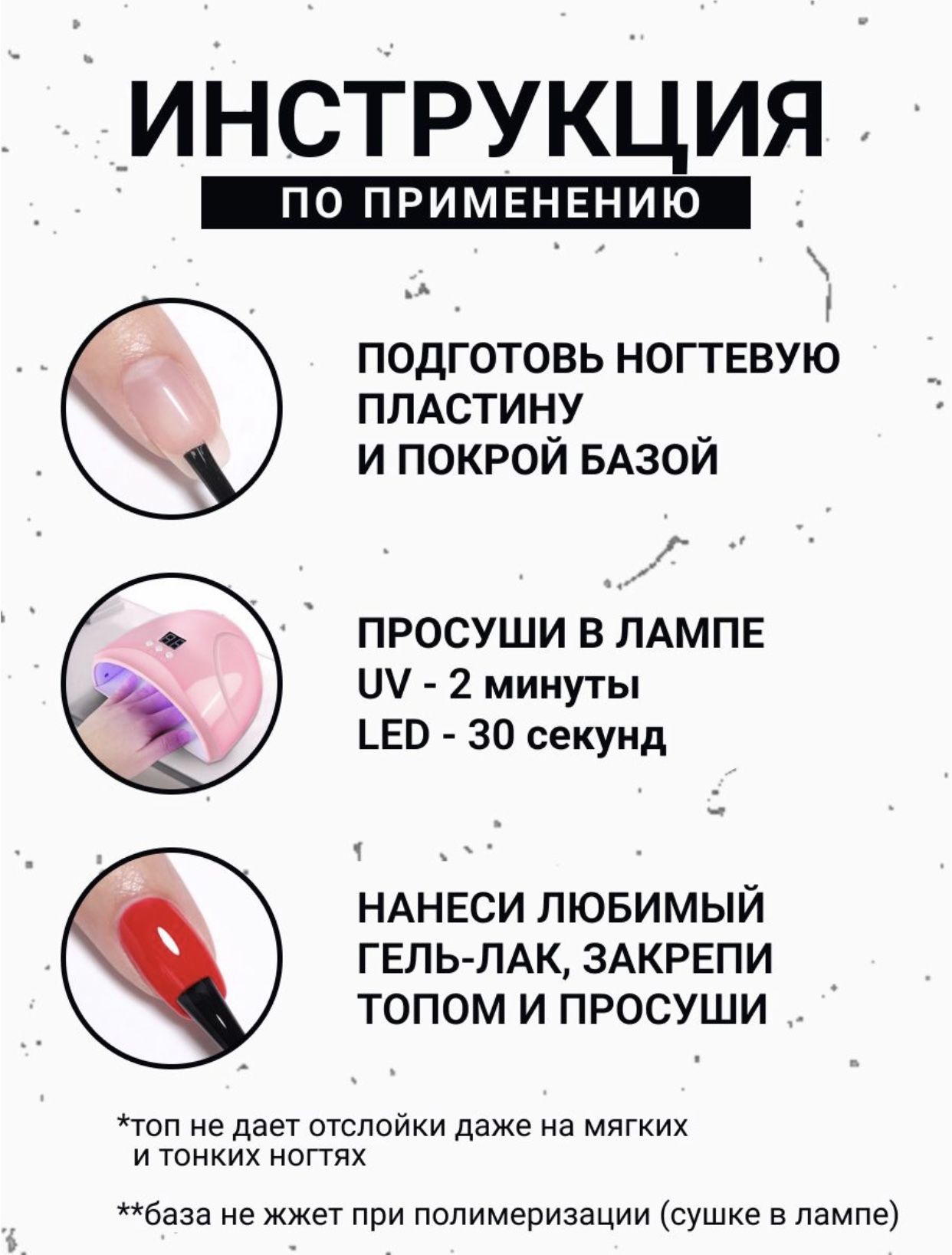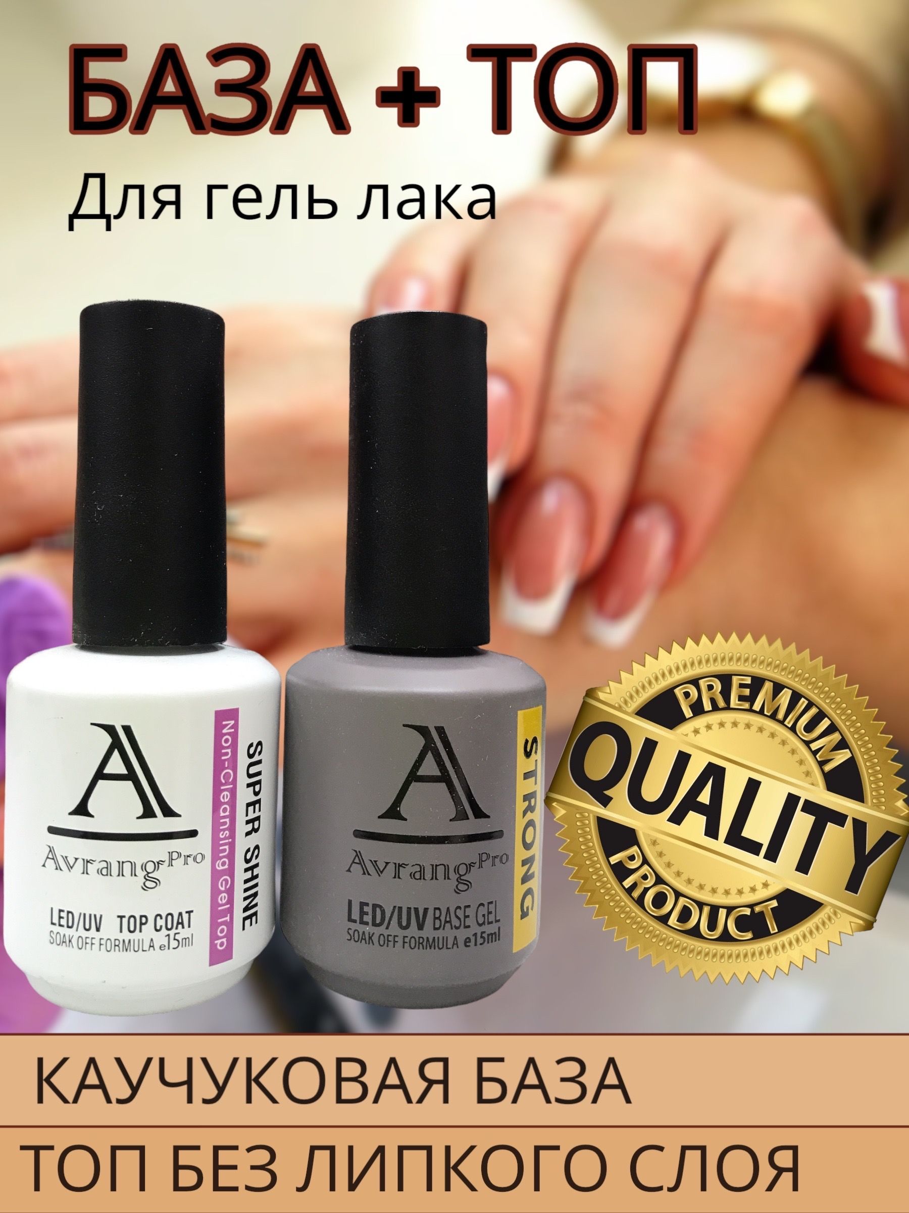 База и топ для гель лака / Каучуковая база / Топ без липкого слоя