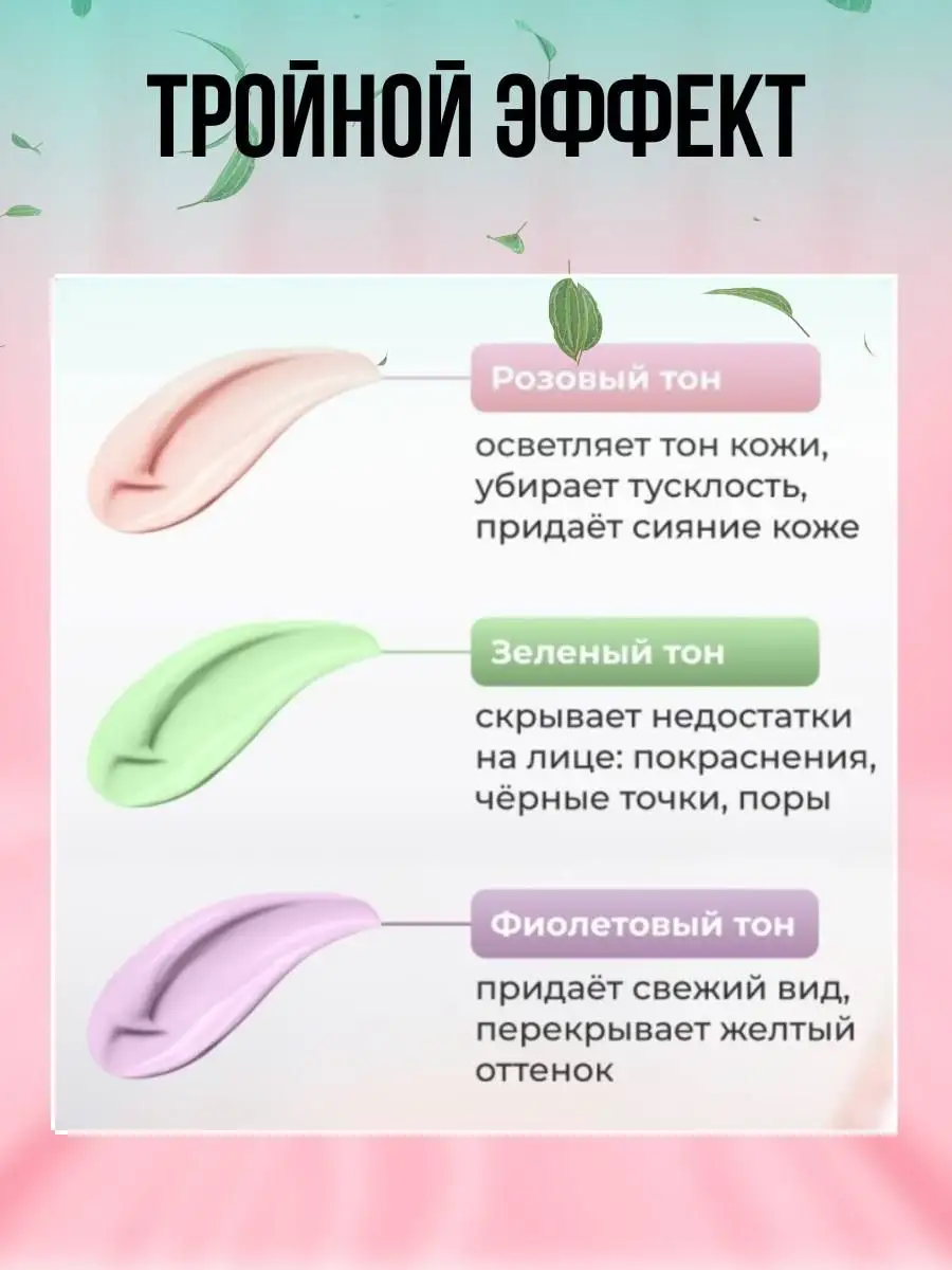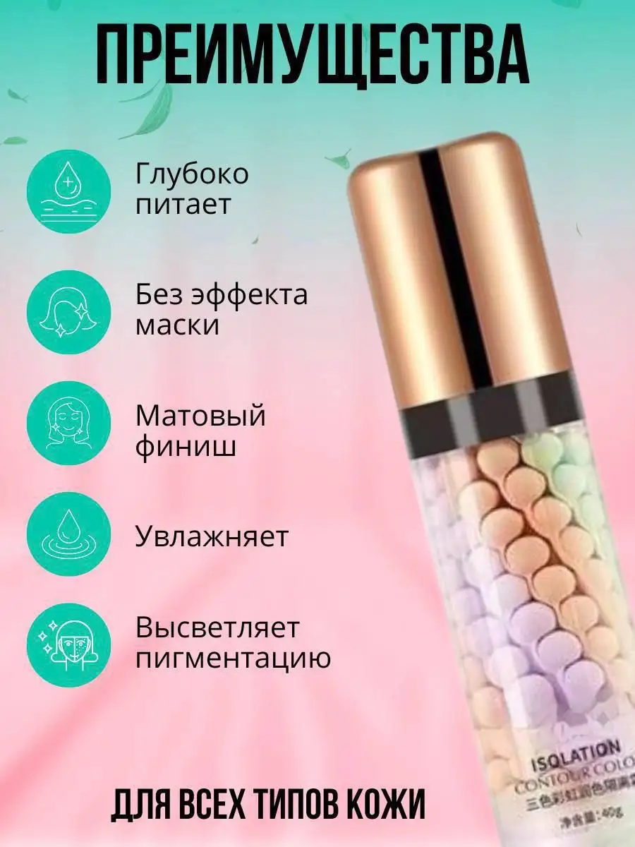База под макияж трехцветная матирующая выравнивающая 3в1