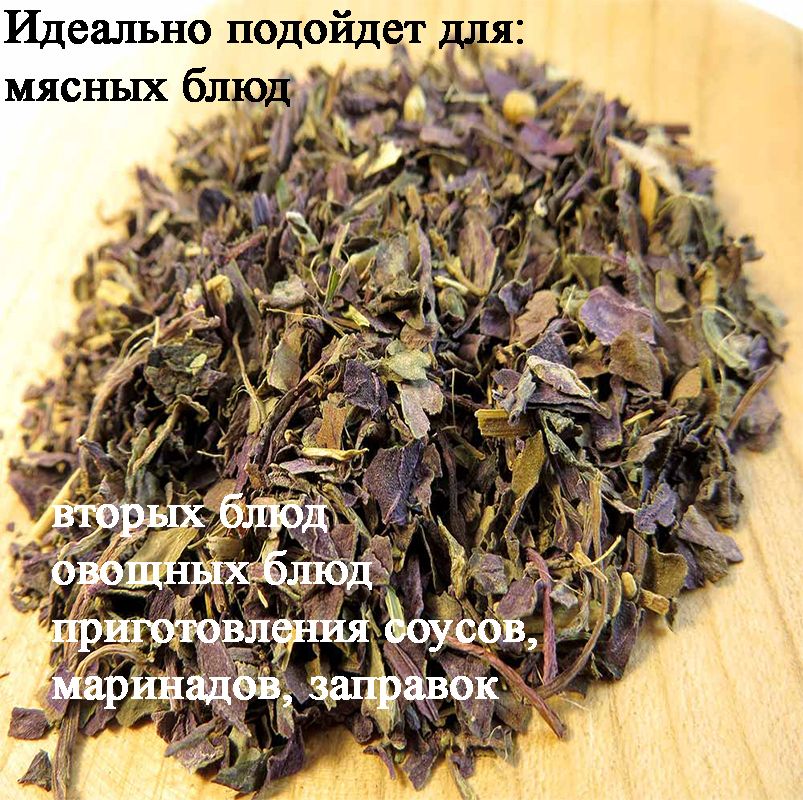 Описание: Полезные свойстваШироко используемый в кулинарии базилик, благодаря содержанию в большом количестве эфирных масел, полезных и питательных элементов, обладает следующими полезными свойствами. Сушеный базилик, в отличие от других пряных трав, сохраняет свои полезные свойства. По содержанию витаминов и полезных веществ он не уступает свежему варианту зелени. Более того: в сушёном виде он сохраняет свои вкусовые и ароматические качества.Применение в кулинарииБазилик сочетает в своем вкусе горьковатые нотки и терпкость. Его используют в приготовлении блюд итальянской кухни.