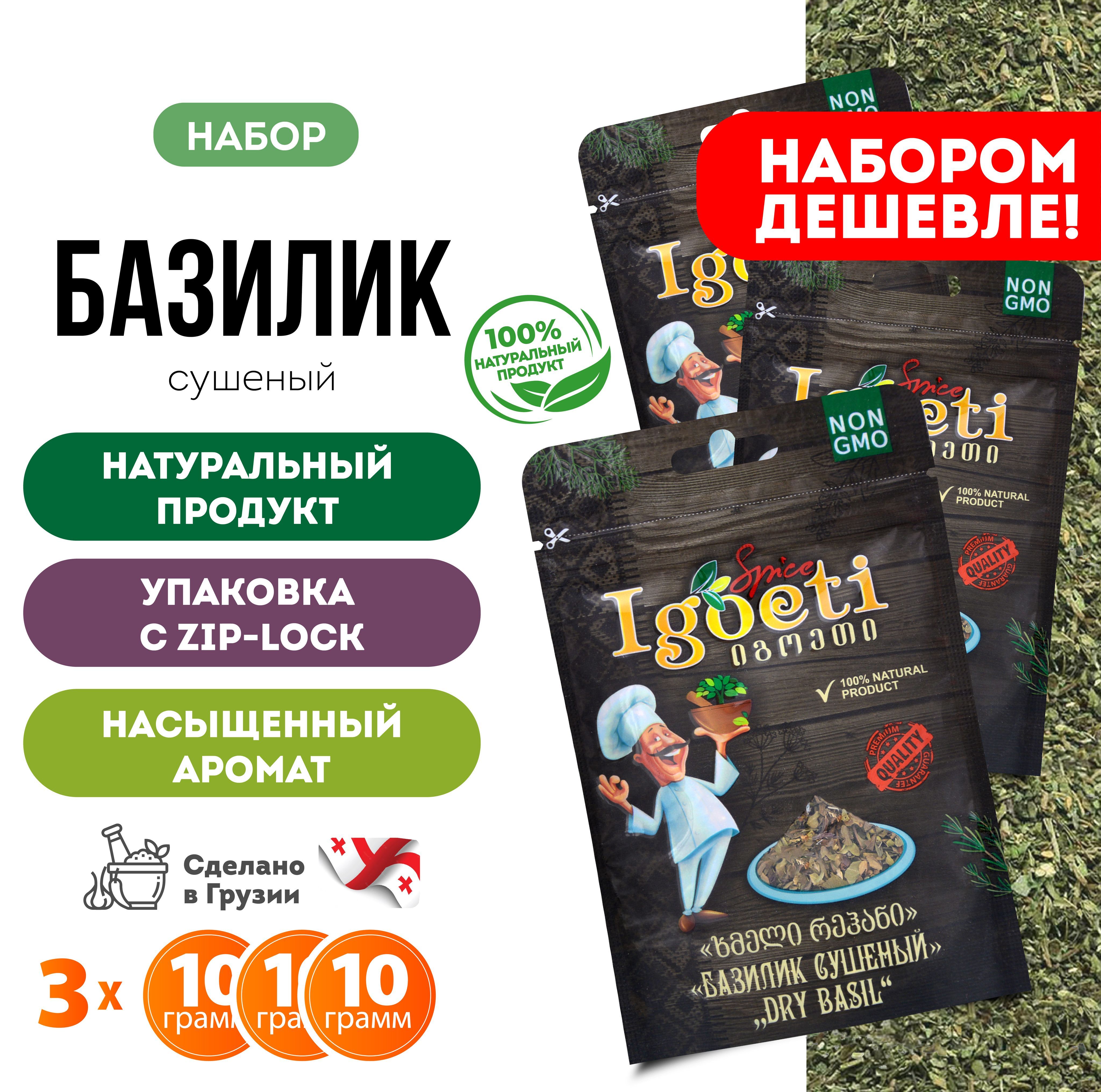 Базилик сушеный 10 гр х 3 шт, специи и приправы Spice Igoeti (Грузия)