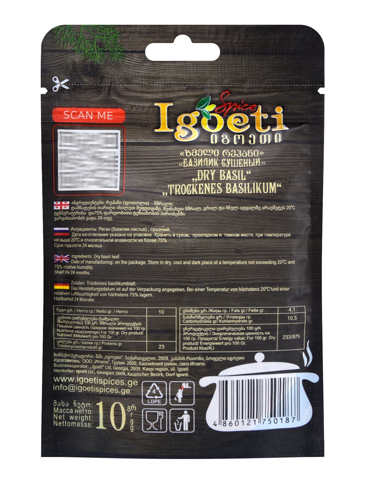 Базилик сушеный 10 гр, специи и приправы Spice Igoeti (Грузия)