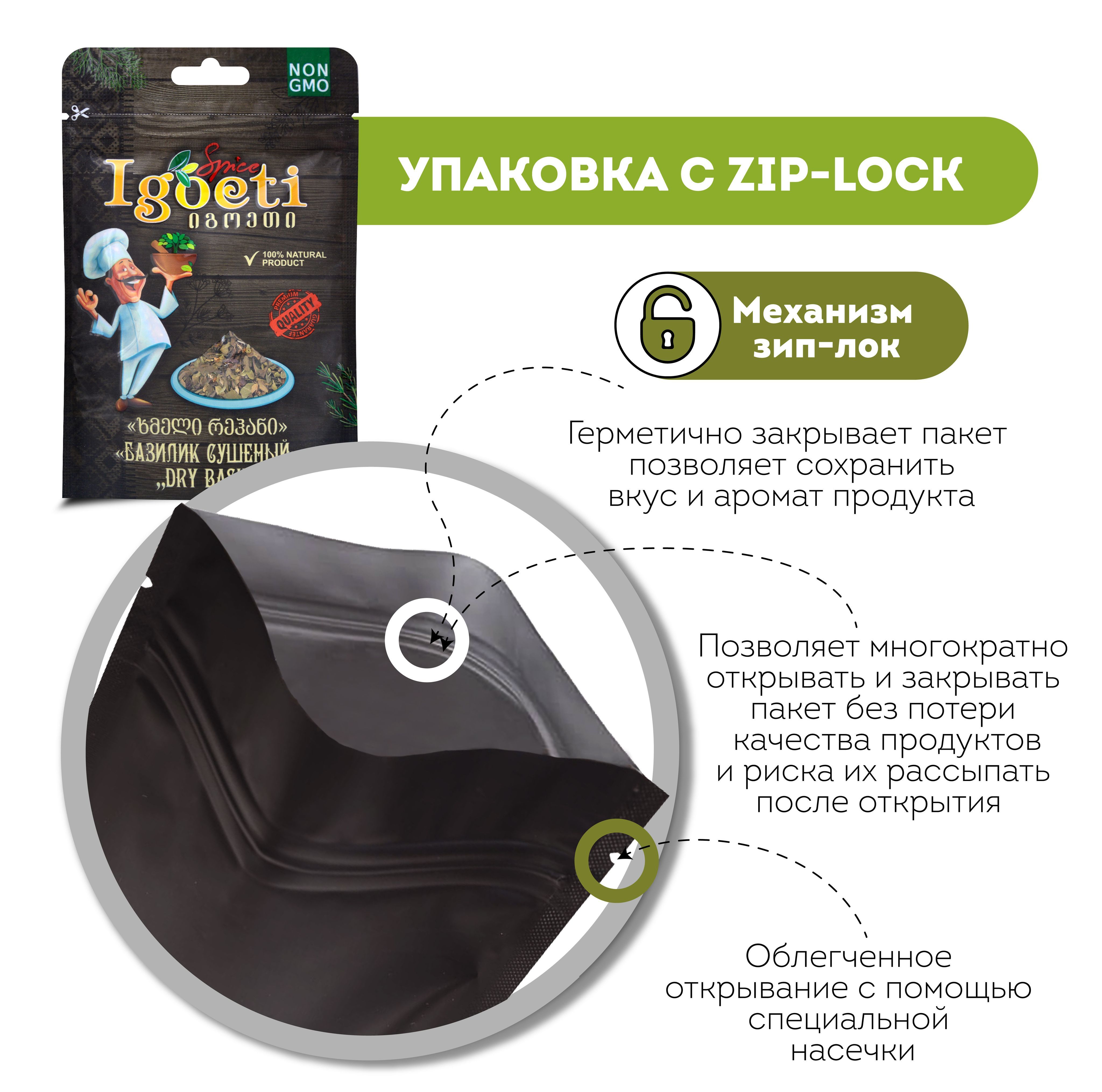 Упаковка с удобным механизмом открытия/закрытия зип-лок.