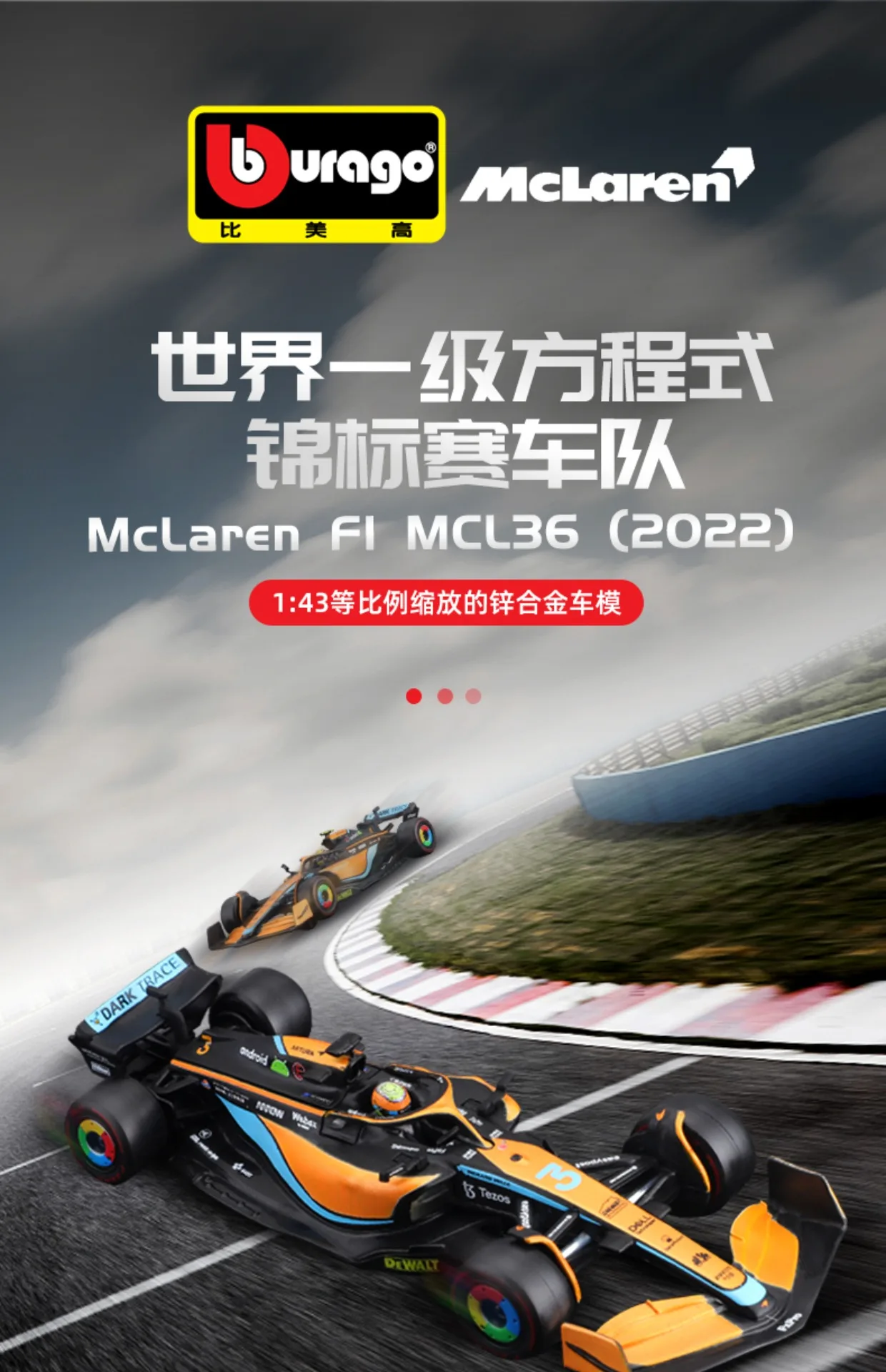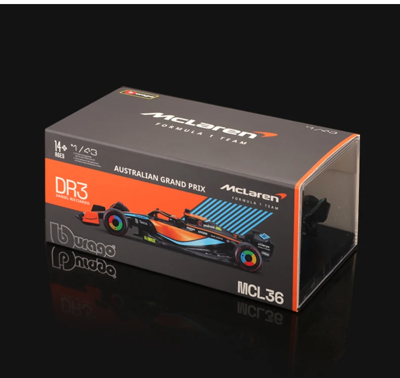 Bburago 1:43 2022 McLaren MCL36 F1 формула гоночного автомобиля статическая имитация литая модель автомобиля из сплава акриловая коробка