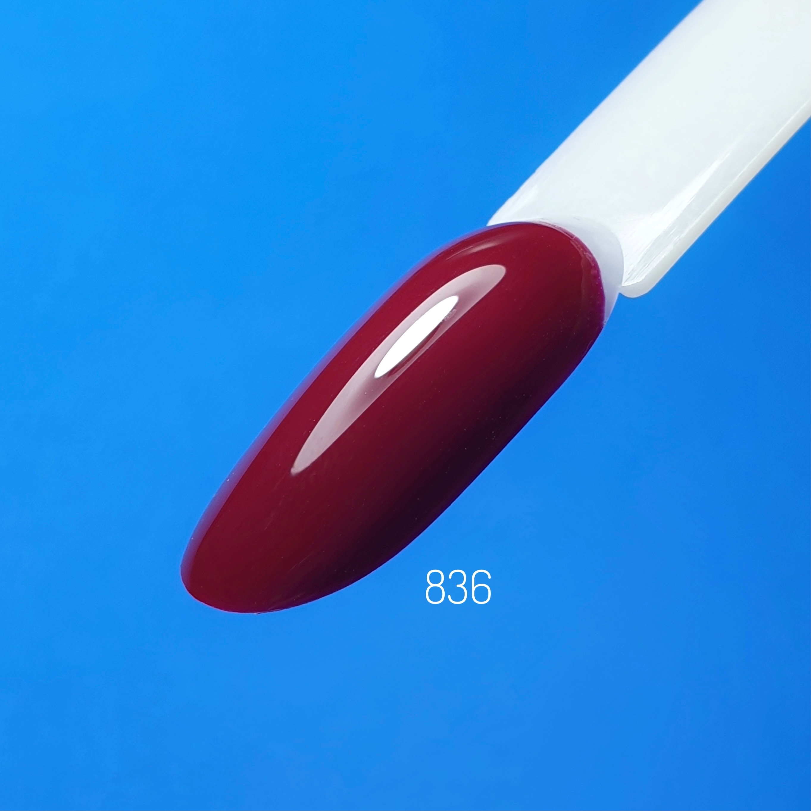Описание: BeautiX №836 плотнопигментированный ярко-бордовый гель-лак, без перламутра и блесток.