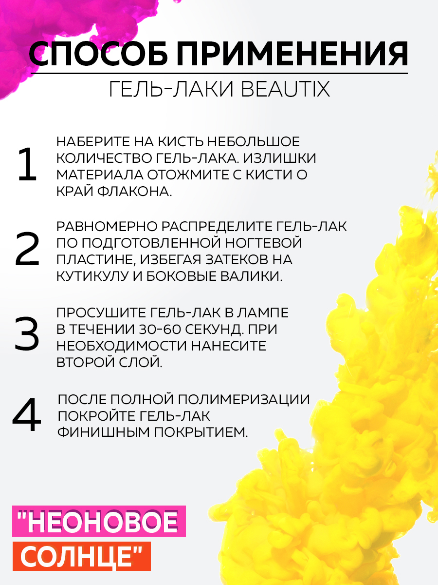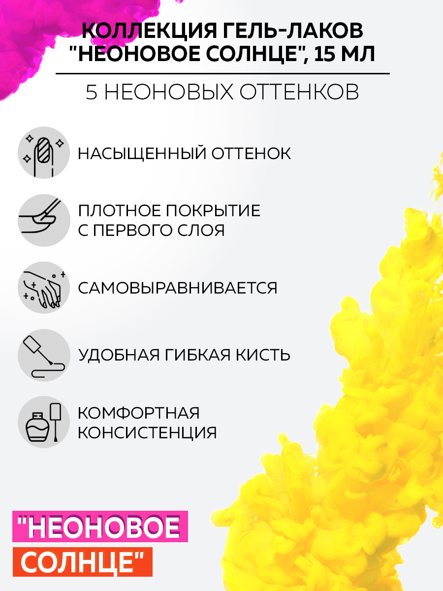 BeautiX, набор гель лаков для маникюра "Неоновое солнце", 5 оттенков, 15 мл