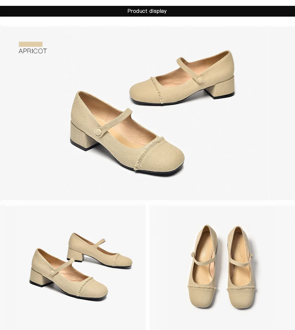 BEAUTODAY/женские джинсовые однотонные туфли-лодочки Mary jane с круглым носком на пуговицах; Сезон весна-2023; Элегантная женская обувь; 18256 ручной работы