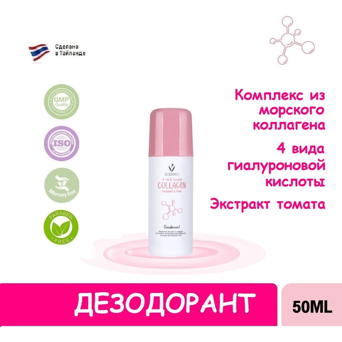 BEAUTY BUFFET Дезодорант МОРСКОЙ КОЛЛАГЕН SCENTIO PINK COLLAGEN RADIANT & FIRM DEODORANT, 50 мл.