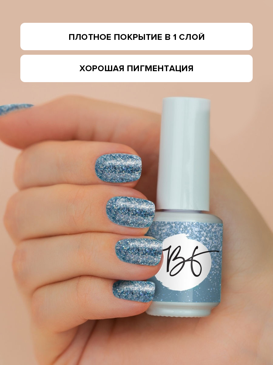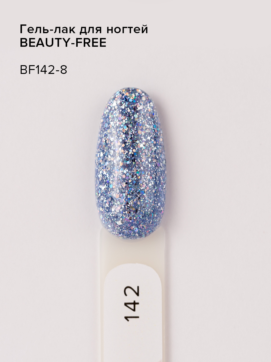 Beauty free, Гель-лак для покрытия ногтей и маникюра Happy Holiday цвет #142 голубой с шиммером, блестки 8 мл,