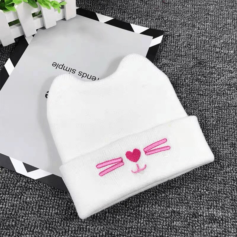 Белая детская Милая шляпа с вышитыми кошачьими ушками
