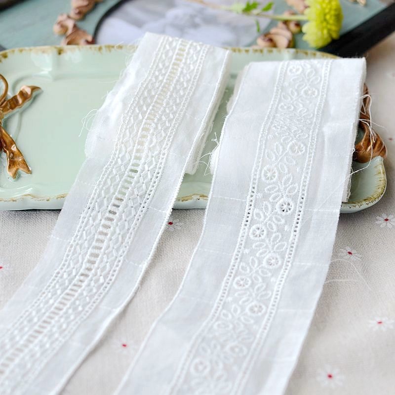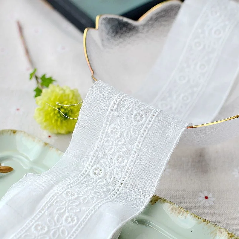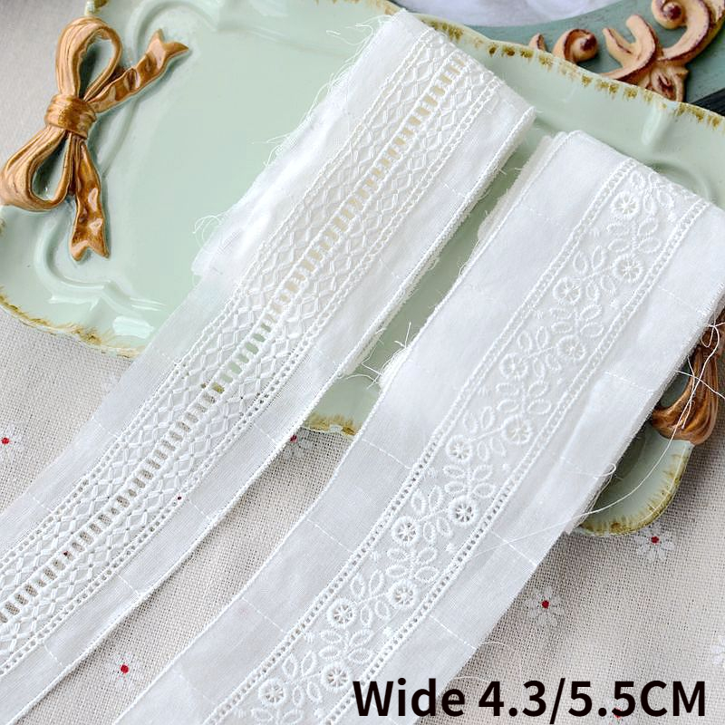 4,3 см/5,5 см в ширину белой хлопчатобумажной ткани с цветочной вышивкой кружевной ткани лента с бахромой боковой обрез платье воротник DIY Швейные гипюровым декором