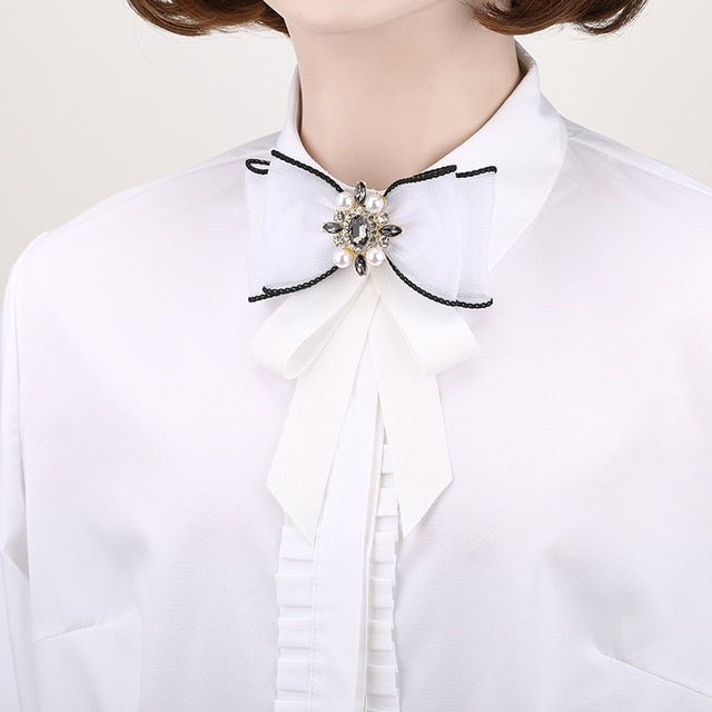 Белая кружевная брошь в виде галстука-бабочки, модная женская брошь в стиле колледжа, воротник рубашки, цветок, стразы, галстук-бабочка, аксессуары для корейской девушки