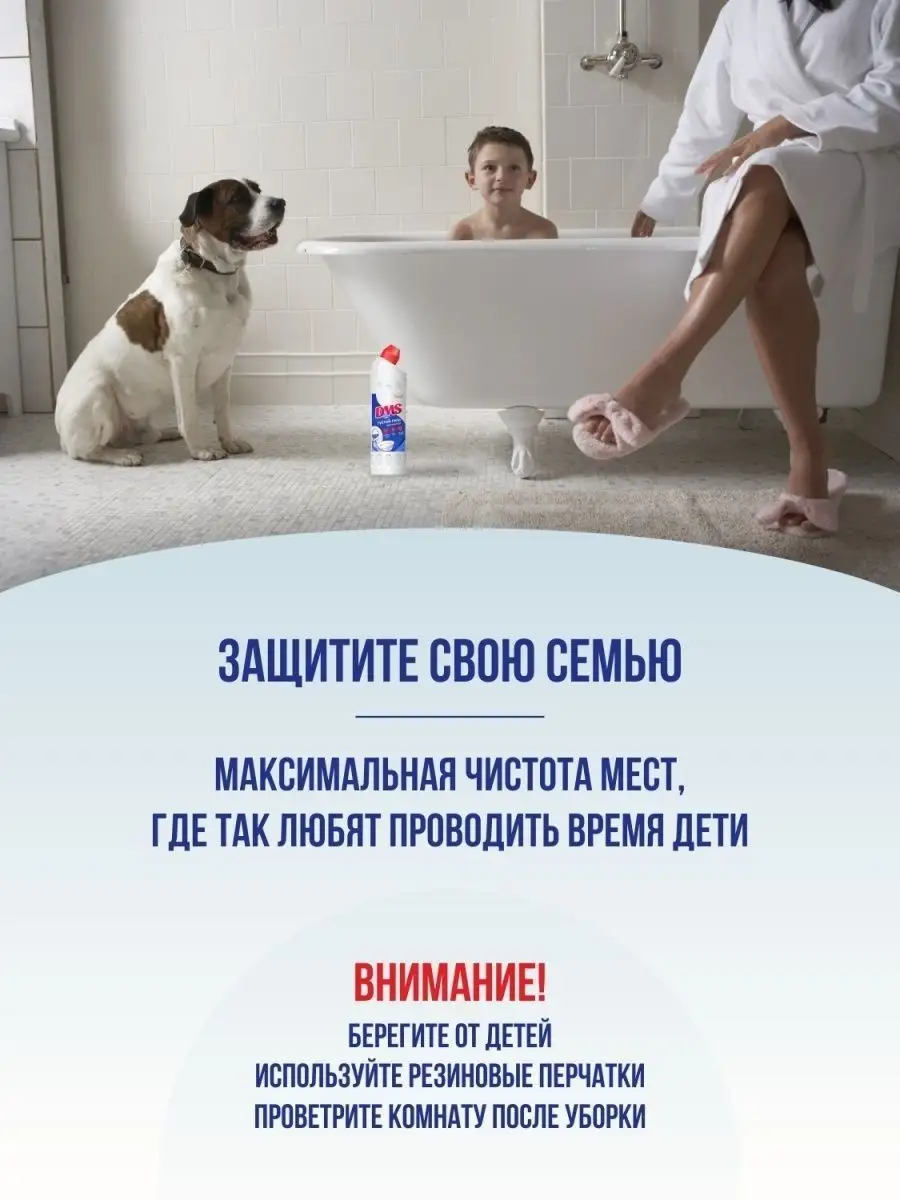 Описание: Густое средство для унитаза DMS - средство широкого применения производства Казанской компании "Содис" (Sodis): отбеливает, дезинфицирует, очищает, стирает и моет. Чистящее средство для туалета идеально подходит для мытья и дезинфекции сантехники: туалет, ванная, унитаз, писсуар, биде, раковина, для душевых и туалетных кабин, для пола и стен, для мусорных ведер. Бытовая химия- средство для унитаза утенок 750 мл устраняет неприятные запахи в стоках и сливах (товары для дачи, дачный туалет). Используется как бытовая химия для кухни - удалит налет, плесень и жир за 15 минут (средство от плесени). Попробуйте для унитаза средство - после его использования ванная и туалет засияют, вы окунетесь в мир убранства и чистоты. Средство от известкового налета придаст сантехнике первозданный вид как с магазина: белый и свежий. Чистящее средство для унитаза с хлором, для ванны и поверхностей убивает до 99,9% известных вирусов, бактерий, плесени, спор и других видов микробов, защищая вашу семью от кишечных заболеваний и аллергии. Специальное густое моющее средство для ванной и средство для уборки 0,75 л борется с плесенью и грибком. Концентрированный гель (для туалета средство) может использоваться в разбавленном виде для отбеливания белья и тканей. Белизна гель - концентрат, можно использовать и как профессиональный отбеливатель: для отбеливания и удаления пятен с белых изделий из хлопчатобумажных и льняных тканей, для мытья эмалированной, фарфоровой, фаянсовой посуды, облицовочной плитки, пластика, холодильников, сантехники. Чистящий гель для туалета содержит мощнейший антисептик - гипохлорит натрия и другие эффективные компоненты, которые максимально очищают поверхности. Густая формула геля антиналет для уборки в ванной комнате и туалете хорошо удерживает белизну на любой поверхности, в том числе вертикальной, и действует даже под водой. За счет своей густоты чистящее средство для туалета имеет небольшой расход. Универсальный очиститель раковины, ванны и кафеля станет незаменимым помощником в быту и на производстве, в местах большого скопления людей, в магазинах и торговых центрах. В составе не менее 5% активного хлора. В разбавленном виде средство можно использовать для мытья полов и санитарной обработки помещения, для борьбы с распространением вирусов и бактериальных инфекций. За счет активного хлора, чистящее средство для ванны DMS gel подходит для эффективной ежедневной уборки. Поисковые запросы: отбеливающее средство domestos для унитаза (доместос), sanfor (санфор), meine liebe, bref для унитаза (бреф для унитаза), бытовая химия для унитазов, писсуар детский, гель отбеливатель, моющее средство для уборки, эффективное средство для различных тканей, очиститель для унитаза, туалетный гель, бытовая химия для дома для ванны, гелевый очиститель унитаза, антисептик для туалета, чистящие средства для туалета, туалет средство, средство от налета для унитаза. На ваш выбор: туалетный утенок 750 мл или товар по акции 2+1 со скидкой